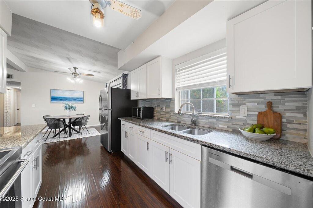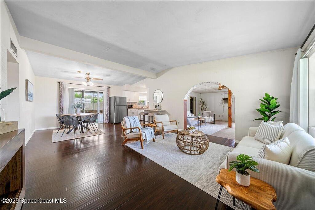 Welcome to this spacious 4-bedroom, 3-bath Merritt Island home. Perfectly blending comfort, function, and Florida lifestyle. Step inside to find a beautifully updated kitchen and an open floor plan ideal for modern living and entertaining. The kitchen boasts granite counter tops, high end cabinetry, eat in breakfast bar, and stainless appliances. The primary suite bathroom has been thoughtfully designed with accessibility in mind. The converted garage offers an additional bonus space. Perfect for a home office, playroom, or fitness area. Enjoy the best of Florida living on the large screened back porch. 2019 metal roof, freshly painted exterior, 2010 metal shutters, this home offers both style and durability. Centrally located close to well rated schools, Aerospace industry job sites, and i95 for quick commute to the Beach or Orlando.