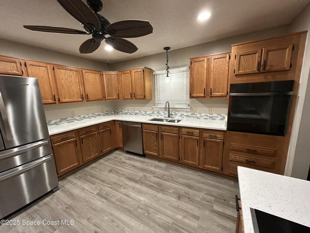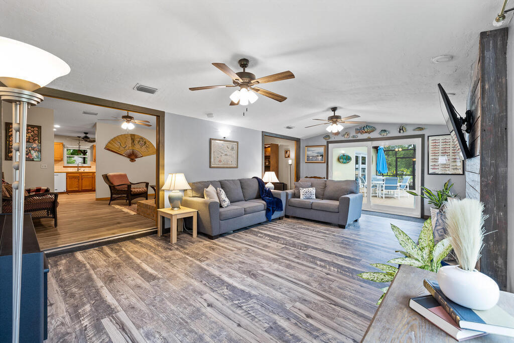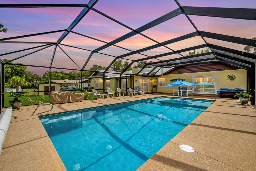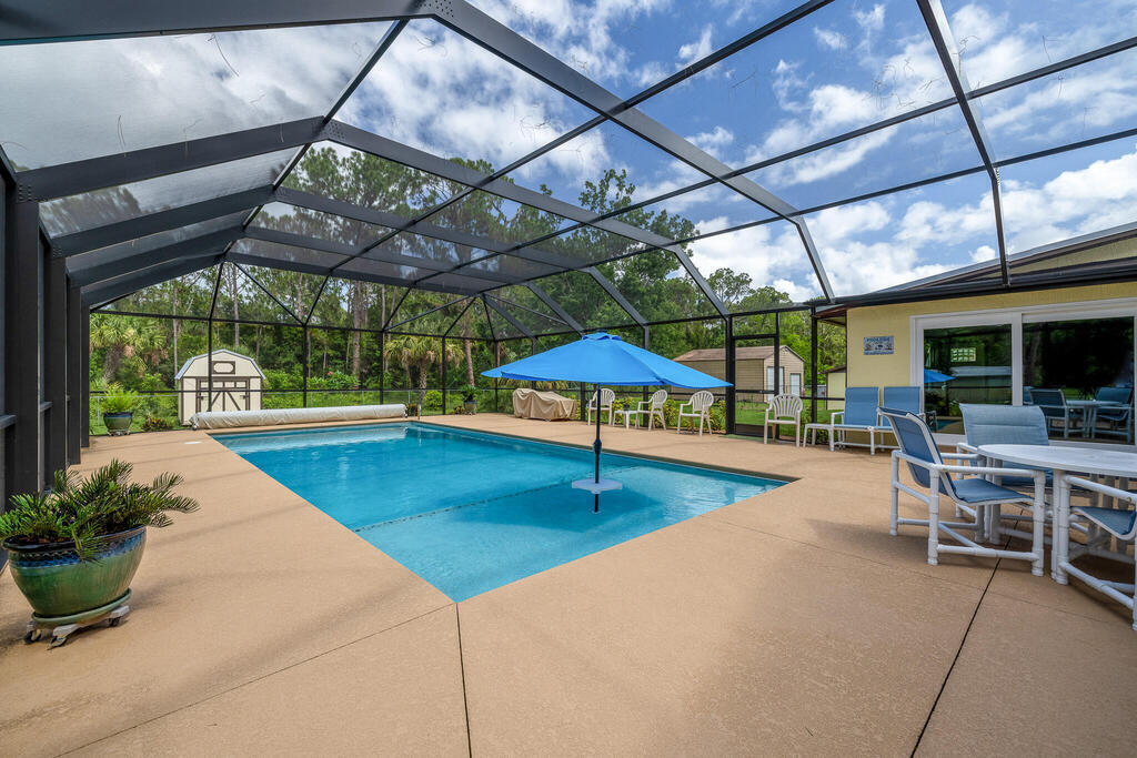 ''MOTIVATED SELLER!'' UPDATED KITCHEN with solid wood resurfaced cabinets, Beautiful Sparkling white QUARTZ counter tops, newer appliances, and more. Discover this tucked-away gem in sought-after Canaveral Groves! Stunning 4 Bed, (possible 5th), 2.5 Bath, 2 Car Garage home on a sprawling 1.1. acre lot with mature trees, private backyard, sparkling heated/enclosed/in-ground POOL, two sheds, and a Metal Roof! This well-maintained residence is NEWLY HURRICANE READY with a WHOLE HOUSE generator, NEWER hurricane windows & doors throughout, additional attic insulation for substantial insurance discounts, and energy savings. Property features, new air/heat pump, two septic tanks, irrigation well, termite bond, and FEMA flood exception certificate, everything you need for easy Florida living!