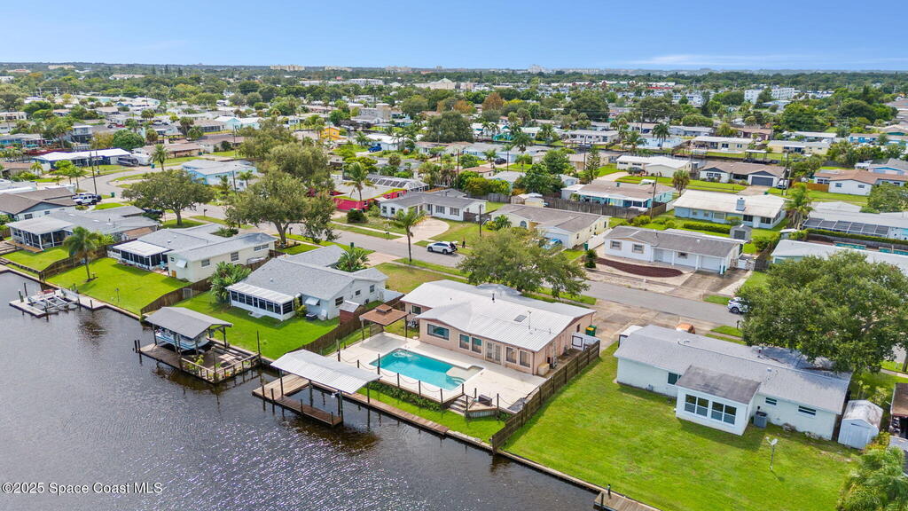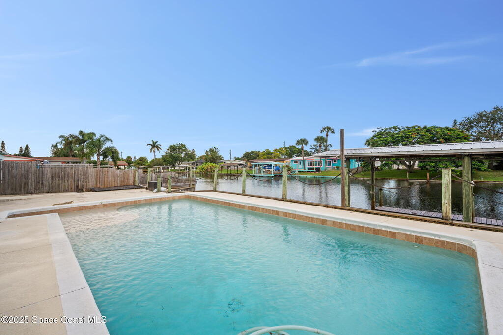 Discover the perfect opportunity to create your dream Florida retreat in this waterfront pool home, ideally located in central Merritt Island. Just minutes from grocery stores, 45 minutes to Orlando International Airport, 10 minutes to famous Cocoa Beach and Port Canaveral., this property blends convenience with the coastal lifestyle.Offering 3 bedrooms, 2 bathrooms and an open floor plan, the home is filled with natural light and sweeping views of the pool and waterway. While the interior is ready for your personal touch and updates, the location and features make it a rare find. Enjoy direct access to the Banana and Indian Rivers from your backyard, complete with a covered boat house-perfect for boating, fishing and soaking in Florida's famous sunsets. Bring your vision and make this waterfront gem your own. This home has a whole home generator, impact windows, updated electric panel and no cast iron plumbing.