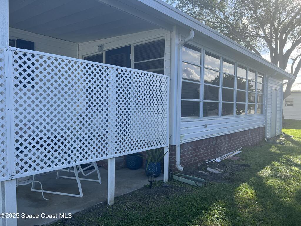 ACTIVE LISTING BACK ON MARKET Tropical Gem in Barefoot Bay! Most upgrades are done on this beautiful home! Discover paradise in Barefoot Bay, FL! This stunning 1990 home offers 1,299 sq ft with 2 beds, 2 baths--perfect for relaxing. Enjoy modern upgrades: AC (2021), water heater (2021), Roof (2021), All interior paint including ceilings and new LVP flooring in dining room (2025) Guest bath: New toilet, vanity, mirror, and Delta shower kit, Primary Bedroom: New ceiling fan, Primary bathroom: New Delta shower kit, Living and Florida Rooms: New carpet, ceiling fan, and blinds, Kitchen: New butcher block island top, Outside: New storm shutters, outdoor furniture, and plants. Unwind on the enclosed Florida Room. The utility room adds convenience. Barefoot Bay boasts top amenities: golf, pools, clubhouses, private beach, and a riverfront dock with gazebo. Priced to sell. Don't miss this steal in Florida's premier manufactured home community.