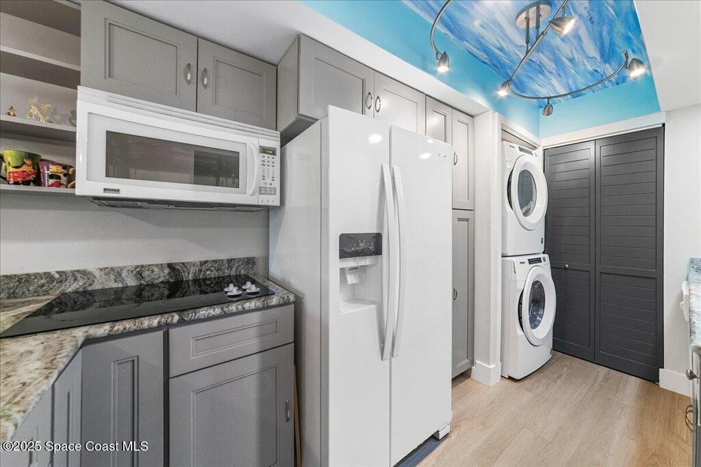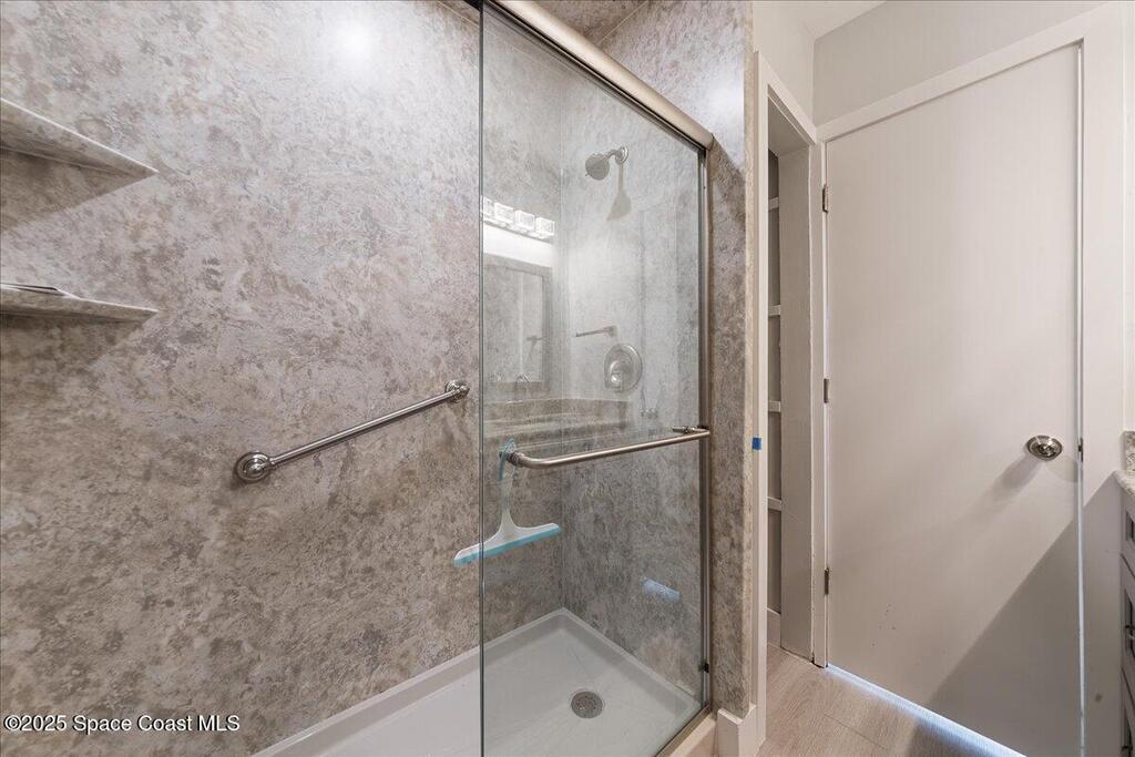 PRICED ADJUSTED TO SELL!!! MOVE IN READY AND perfectly upgraded sanctuary in the heart of Titusville. Get ready to be WOWED by the redesigned Kitchen which makes the best use of the space and the most storage possible while including a laundry area (with washer & dryer) IN the unit. Upstairs find two Primary Suites, each with recently updated and gorgeous en Suite baths. Each bedroom has a private balcony & new hardware. lighting & fans. New LVP flooring throughout. New A/C in 2023. The bedrooms have closet systems and the custom built in Murphy Bed in the guest bedroom conveys! There is a custom built in in the Great Room perfect for Work From Home, Crafting, Toy Storage and/or Entertainment Center for TV, gaming & computer. The 2 rear patios overlook green space and the screen enclosed patio is the perfect place for morning coffee and evening sunsets. Reach out NOW to schedule a private tour of this one of a kind Titusville condo and make it yours. SOME PHOTOS VIRTUALLY STAGED