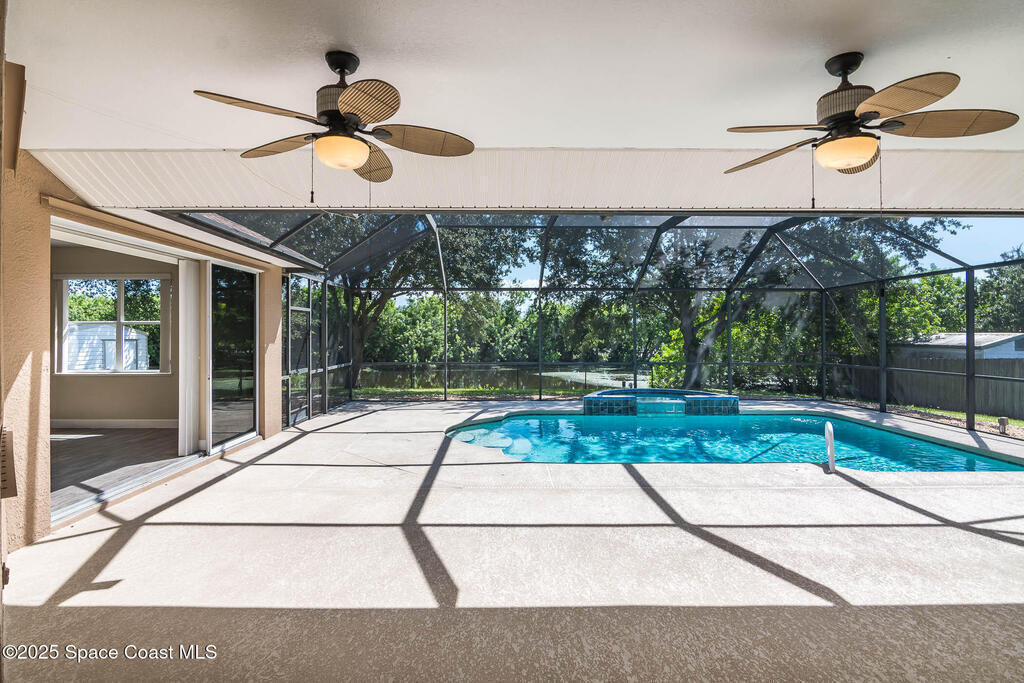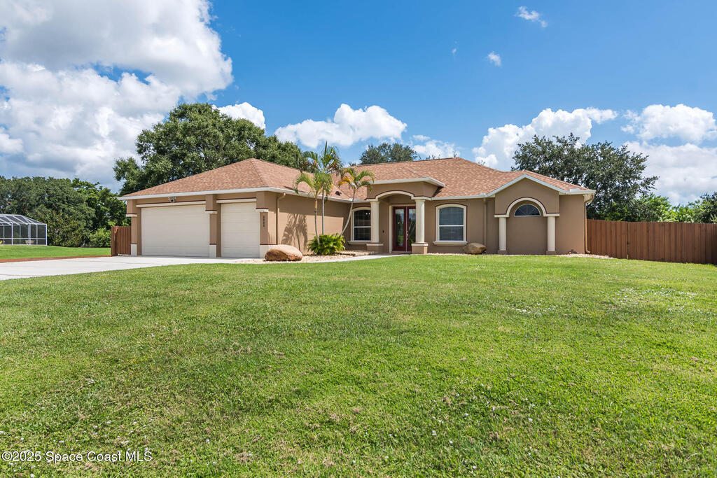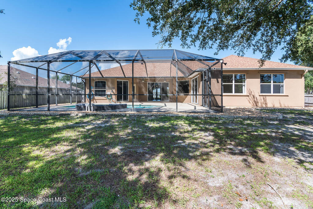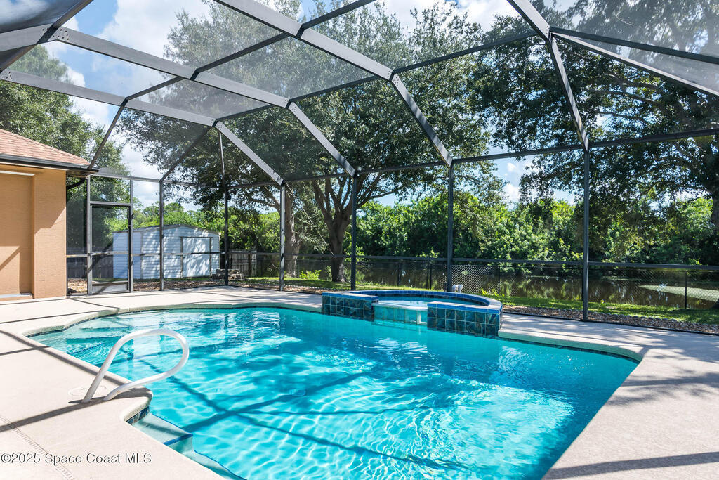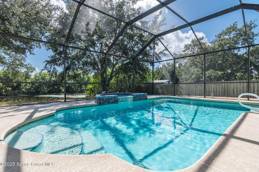 Bring an Offer! Discover this beautiful 5-bedroom, 3-bath pool home on a half-acre lot with NO HOA in Merritt Island, Florida! This move-in ready home features an open-concept kitchen with breakfast nook, spacious living and family rooms, and a formal dining room--ideal for entertaining. Enjoy the Florida lifestyle in your screened lanai with heated pool, waterfall spa, and outdoor shower. The primary suite offers his-and-hers closets, jetted tub, dual shower heads, and direct pool access. Fenced yard includes RV parking with 50-amp and sewer hookup, boat parking, and a storage shed. Upgrades include: vaulted ceilings, quartz countertops in baths, decorative transoms, central vacuum, 3-car garage with brand-new floor coating, clear storm shutters, disappearing sliding glass doors, new roof (2025), and pool resurfacing (2023). Conveniently located 10 minutes to Kennedy Space Center, 15 minutes to Cocoa Beach, and 40 minutes to Orlando International Airport. Experience Florida Living!