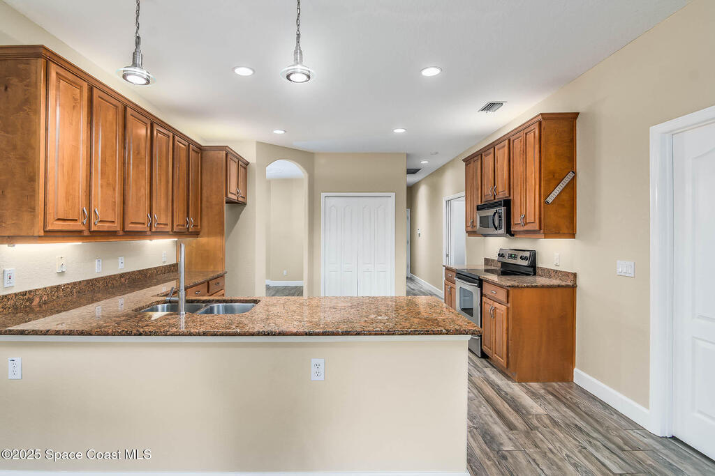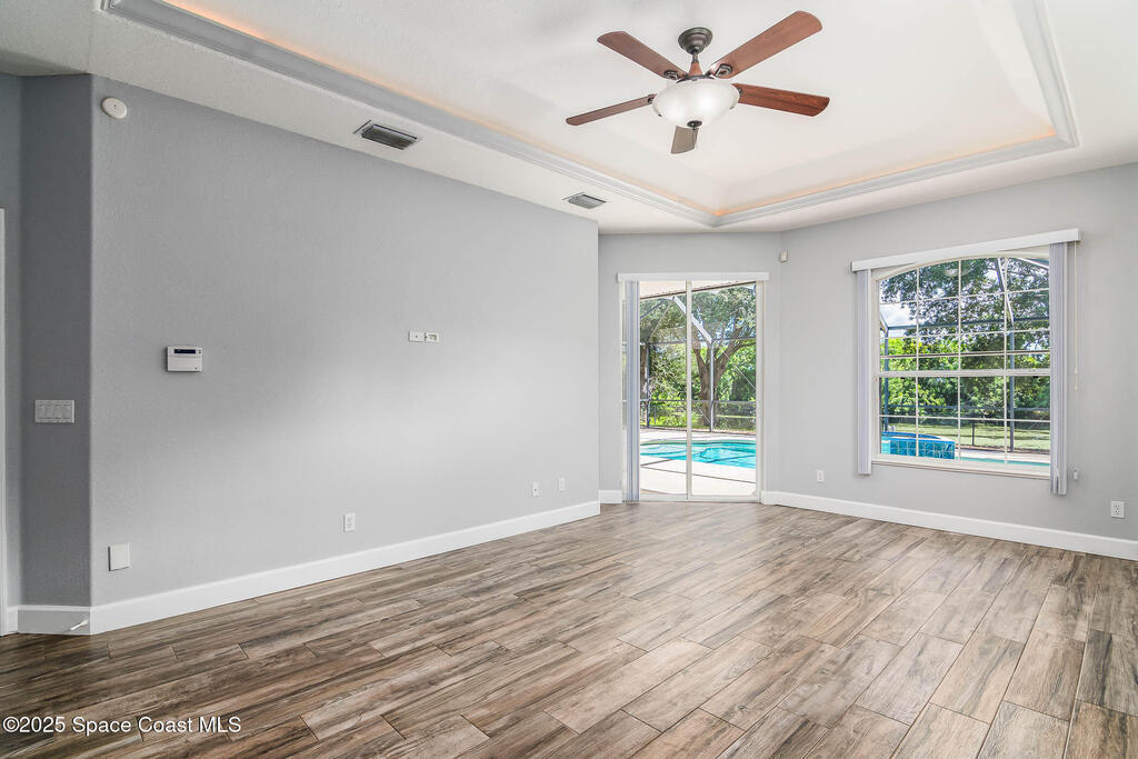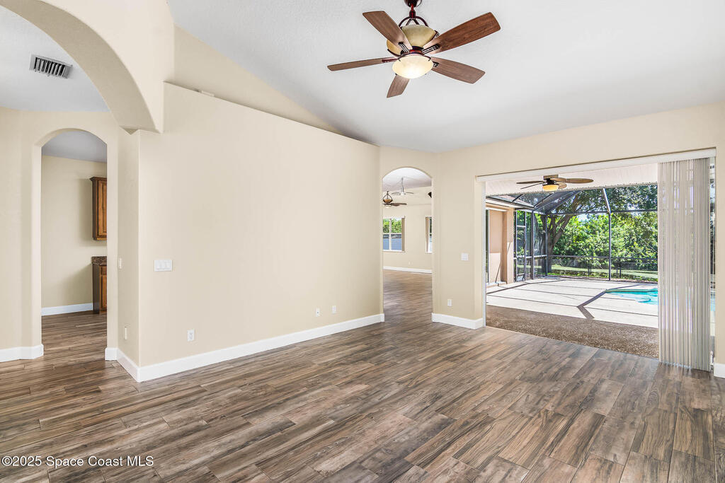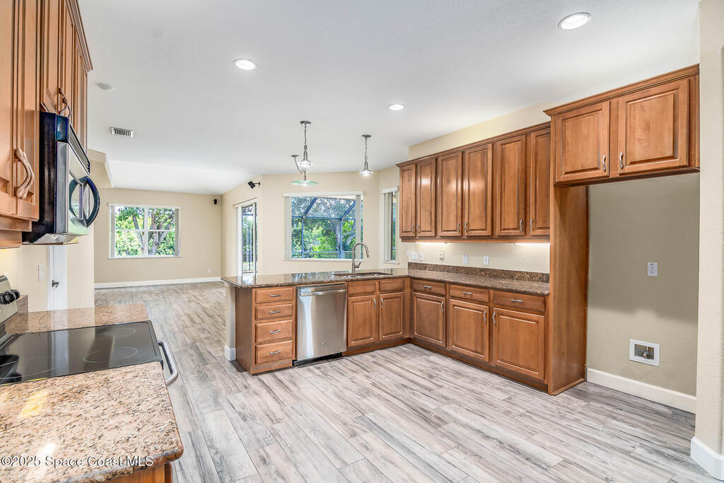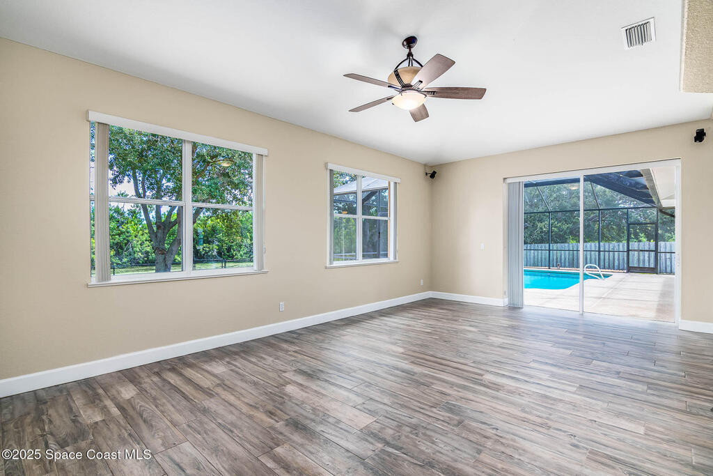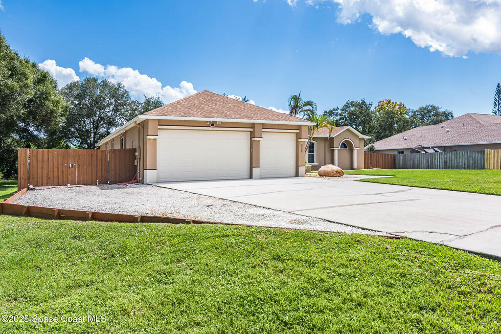 Bring an Offer! Discover this beautiful 5-bedroom, 3-bath pool home on a half-acre lot with NO HOA in Merritt Island, Florida! This move-in ready home features an open-concept kitchen with breakfast nook, spacious living and family rooms, and a formal dining room--ideal for entertaining. Enjoy the Florida lifestyle in your screened lanai with heated pool, waterfall spa, and outdoor shower. The primary suite offers his-and-hers closets, jetted tub, dual shower heads, and direct pool access. Fenced yard includes RV parking with 50-amp and sewer hookup, boat parking, and a storage shed. Upgrades include: vaulted ceilings, quartz countertops in baths, decorative transoms, central vacuum, 3-car garage with brand-new floor coating, clear storm shutters, disappearing sliding glass doors, new roof (2025), and pool resurfacing (2023). Conveniently located 10 minutes to Kennedy Space Center, 15 minutes to Cocoa Beach, and 40 minutes to Orlando International Airport. Experience Florida Living!