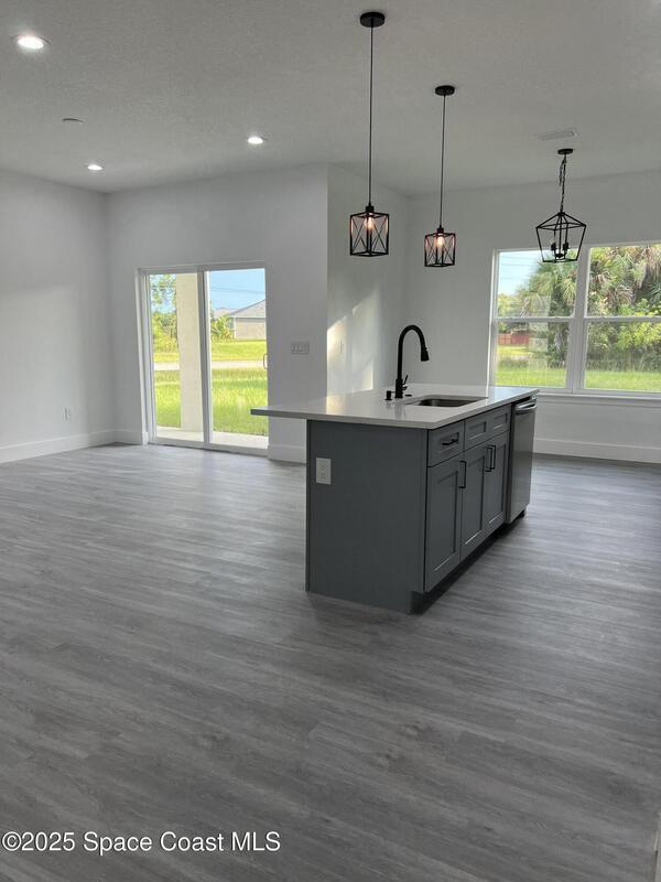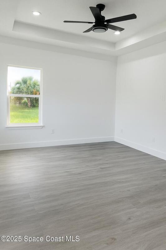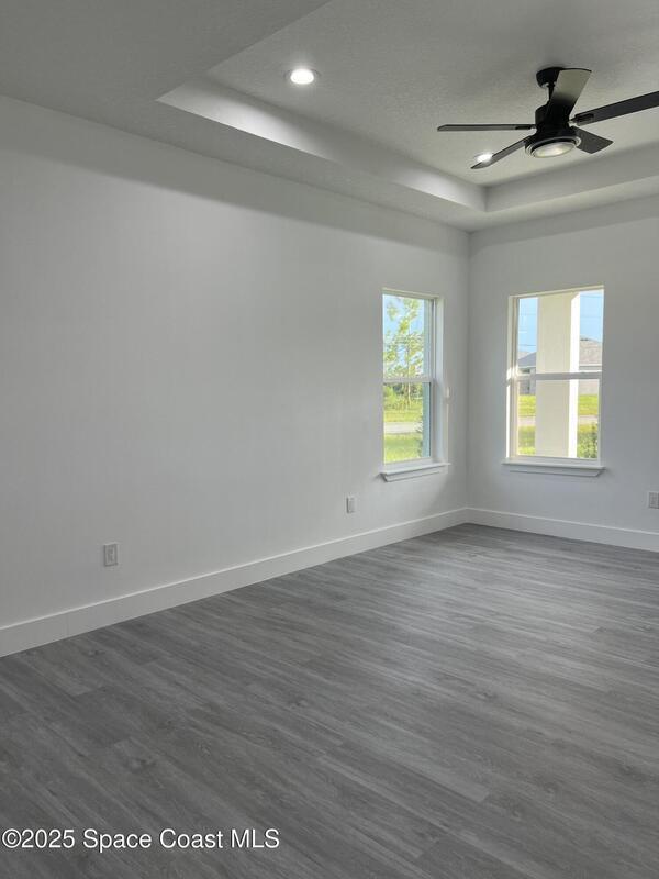 Oversized 0.28-acre corner lot with plenty of space to build your dream pool. This brand-new 4BR/2BA home is built with quality finishes: impact windows/doors, 9'4'' ceilings, recessed lighting, Laminate vinyl plank waterproof flooring, quartz countertops, water-resistant kitchen surfaces, and stainless steel appliances (refrigerator included). Bathrooms showcase floor-to-ceiling tile with glass door. Extras include a soft water system, extra closets, and a motorized garage opener. Open-concept design filled with natural light. New home warranty included -- schedule your private showing today!