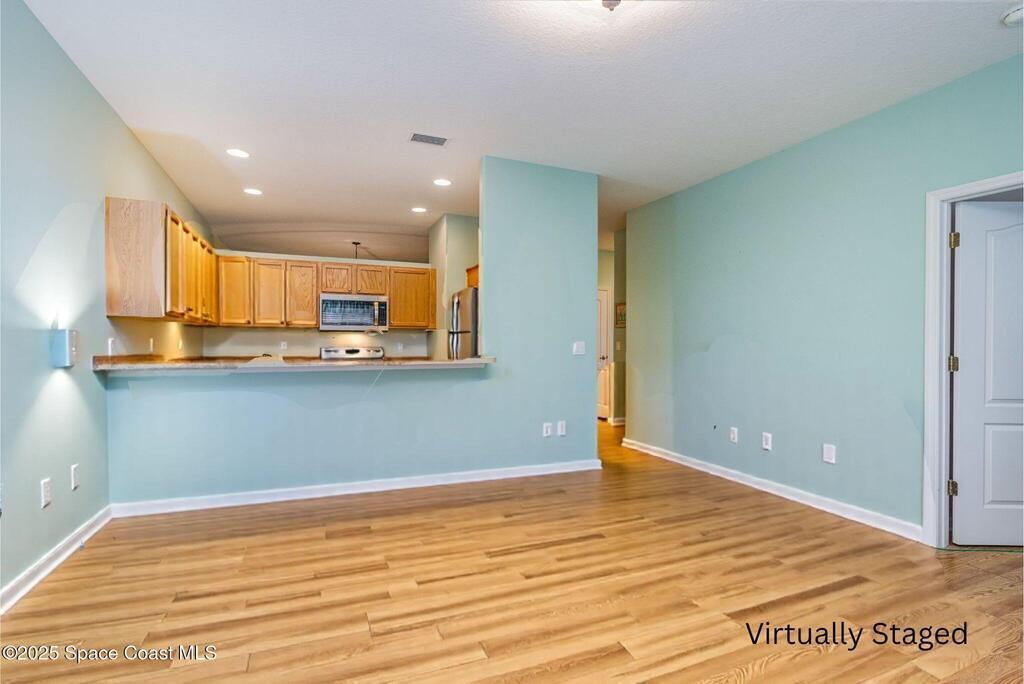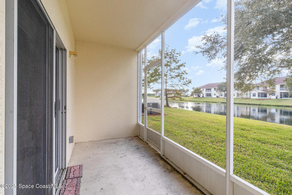 Pond Views & Easy Living! Fabulous 1-story, ground-floor condo with peaceful pond views from your screened porch. Imagine yourself relaxing in the evenings on the back porch, which has a hint of privacy from an oak tree, but still being close to all the amenities of Melbourne and its regional airport. This 3BR/2BA + dining/flex room, has soaring ceilings, and a huge primary suite with walk-in closet and double vanities in the bath. Updates you'll love include: roof 2022, HVAC 2018, and many brand new kitchen appliances. The 1-car garage adds just the right convenience. The HOA covers lawn care, and the sparkling community pool is ready when you are. This condo is in a prime location - it is close to I95, shopping, dining, and more!