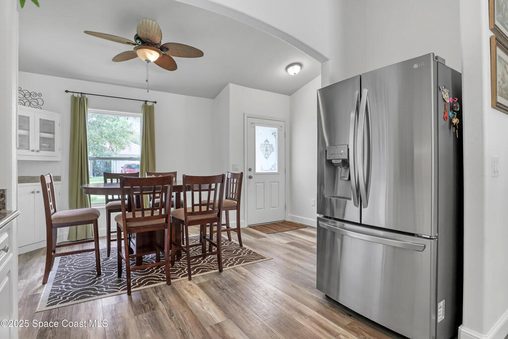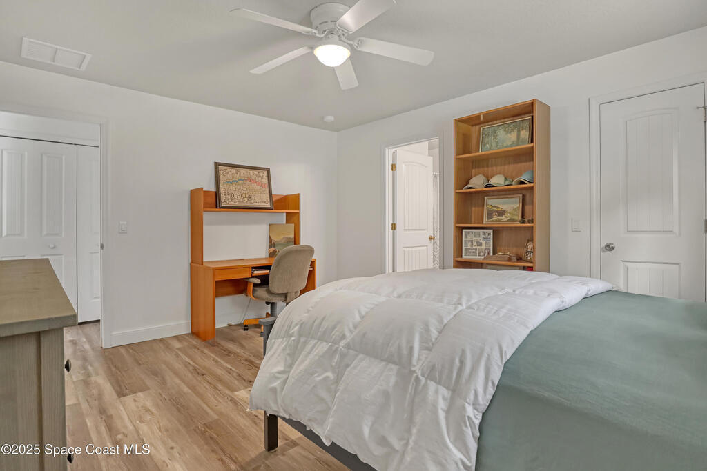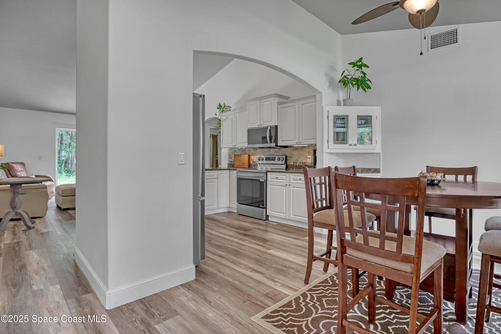 Discover this stunning residence in the highly sought-after Country Oaks neighborhood, where modern updates meet timeless charm. This meticulously maintained home feels brand new, featuring fresh paint and newer vinyl plank flooring and newer carpet in 3 of the 4 spacious bedrooms!! This 4/2/2 split floor plan offers privacy and functionality. Enjoy the separate dining room with built-in buffet shelves, perfect for gatherings, along with walk-in closets and ceiling fans for added comfort. Step outside to your peaceful backyard oasis, surrounded by lush trees--ideal for relaxation and entertaining. Additional features include durable storm shutters for peace of mind. **LOCATION, LOCATION, LOCATION!** Just a **15-minute drive to Cocoa Beach** and even closer to charming downtown Cocoa Village where you'll enjoy boutique shopping and dining. With easy access to I-95, Orlando is only about **30 minutes away**. Don't miss this one, schedule your showing today!!