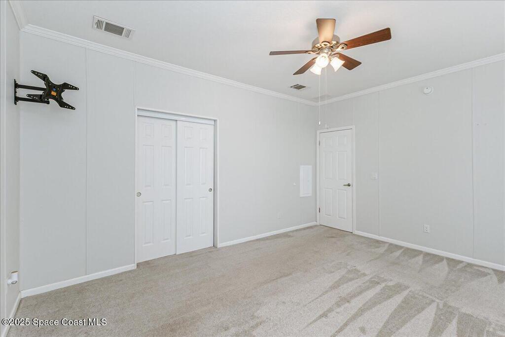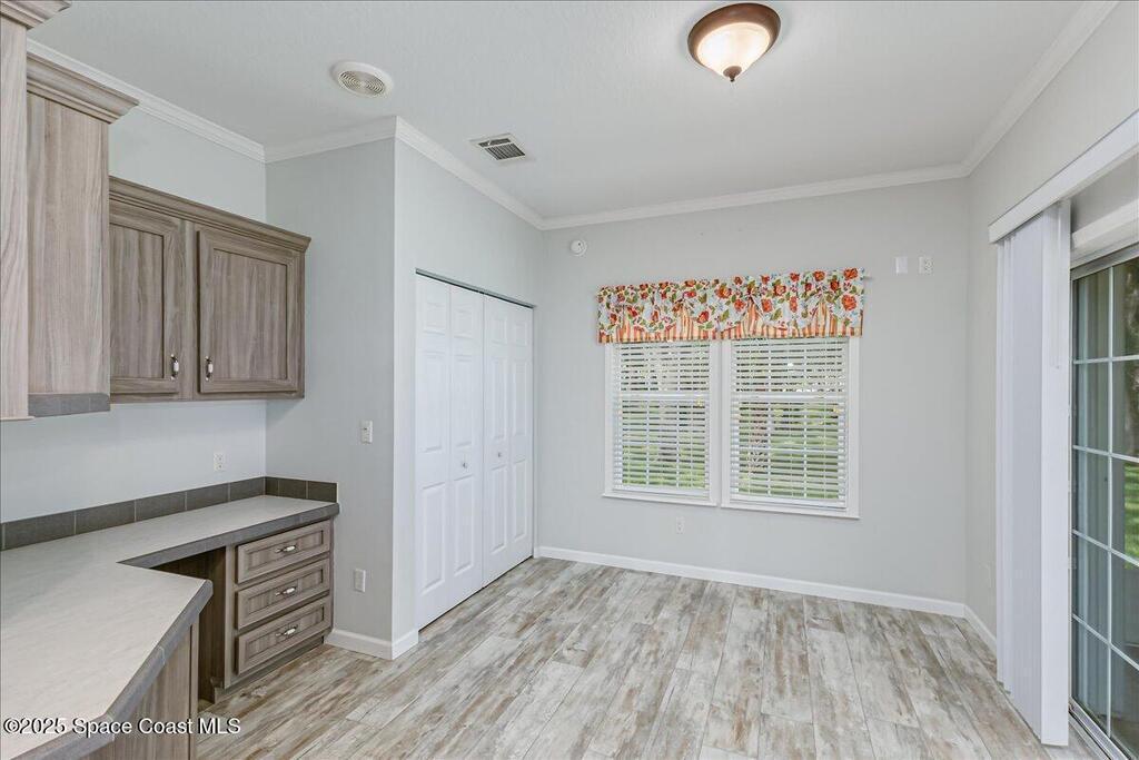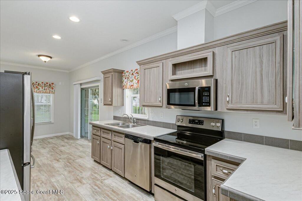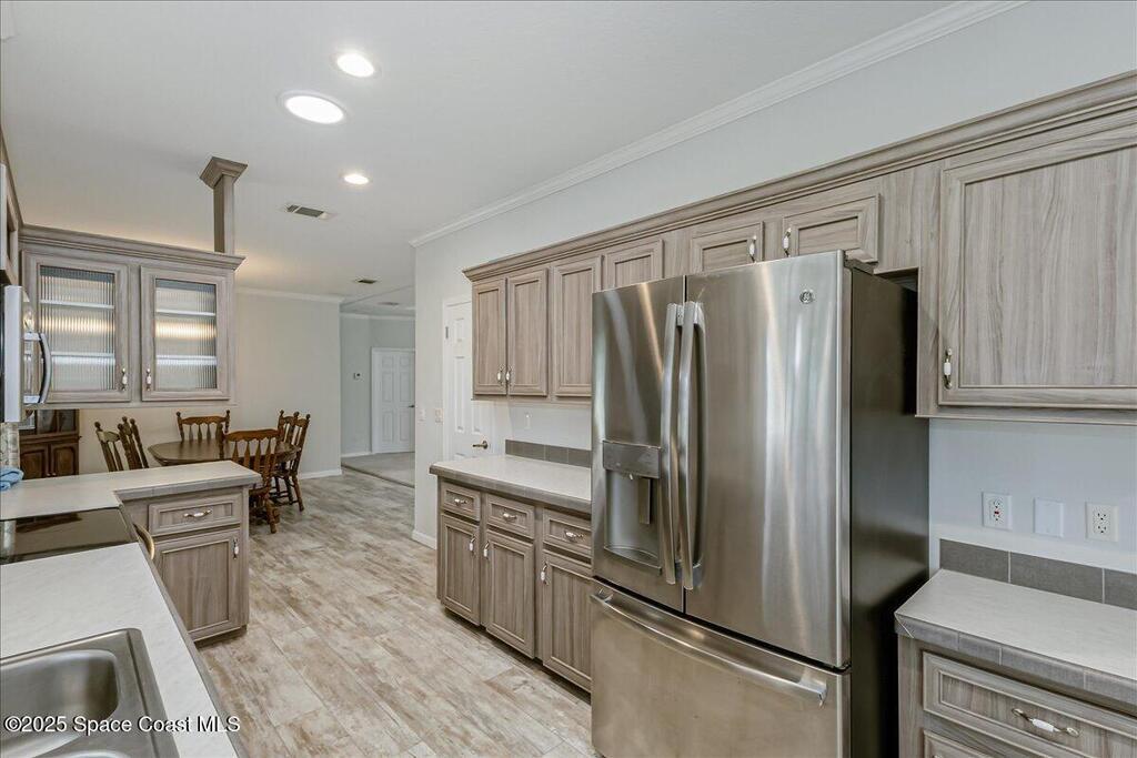 Discover this inviting 3 bedroom, 2 bath mobile home in the desirable Port Malabar Holiday Park community in Palm Bay, Florida. Step inside to find durable vinyl flooring throughout the living areas, paired with cozy carpeting in the bedrooms for added comfort. The spacious kitchen shines with modern stainless steel appliances, perfect for meal prep, and includes a charming breakfast nook plus a dedicated dining room area for gatherings.Outside, a large storage shed offers ample space, enhanced by a practical loft area for extra organization. But the true highlight is the premium lot on a quiet cul-de-sac, overlooking a expansive oak hammock that provides natural beauty and privacy. Relax on the screened-in deck, where you can savor the serene views and fresh air without the annoyance of insects!This home combines functionality with a peaceful setting, ideal for relaxed Florida living. Schedule your viewing today!