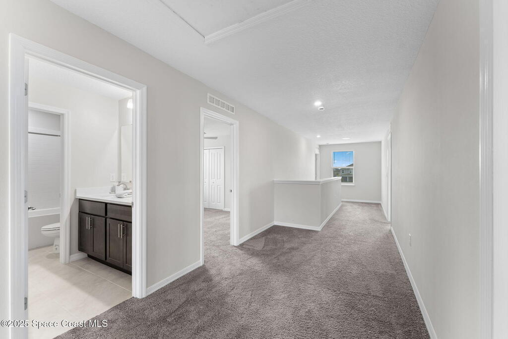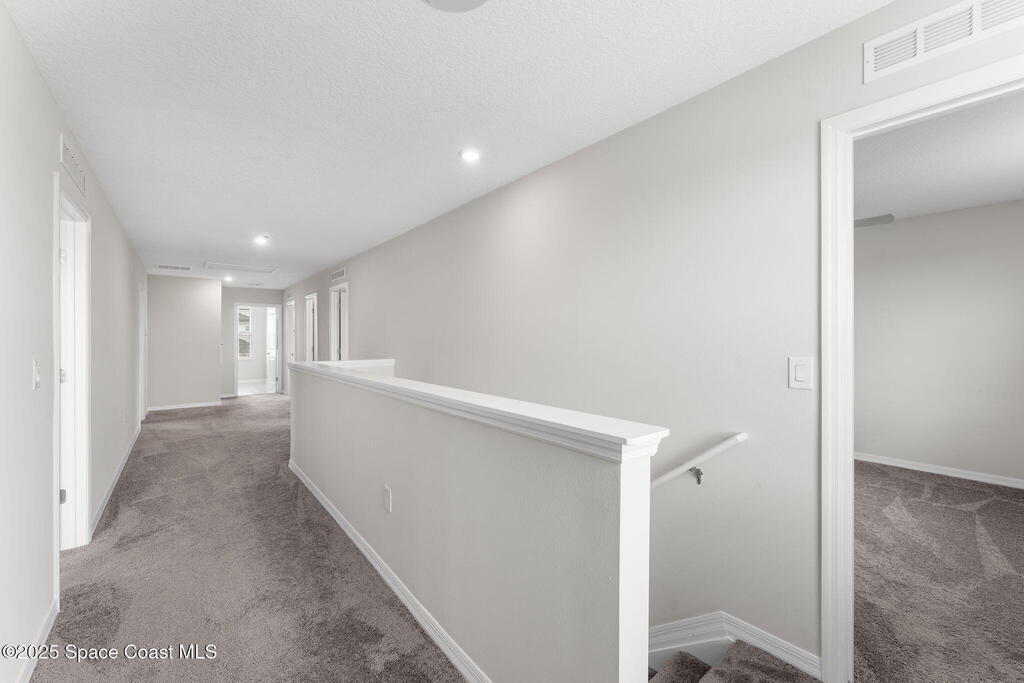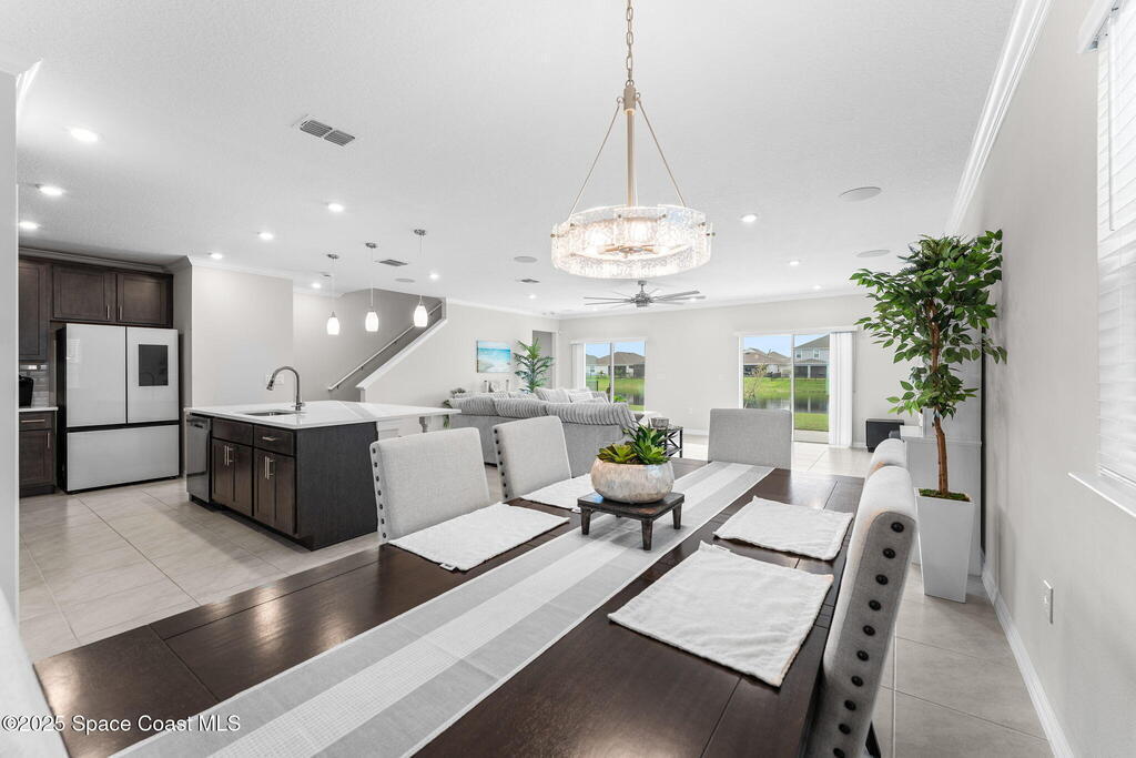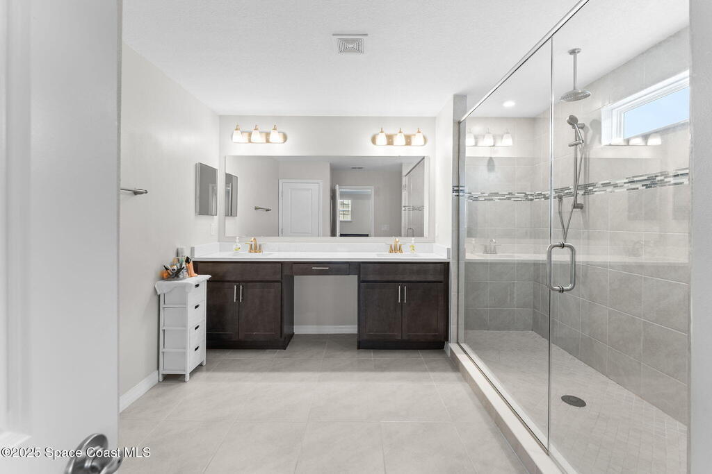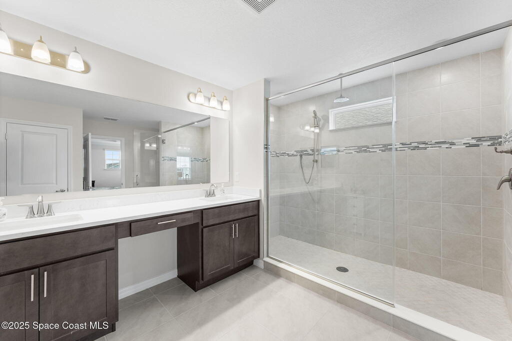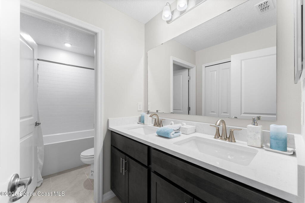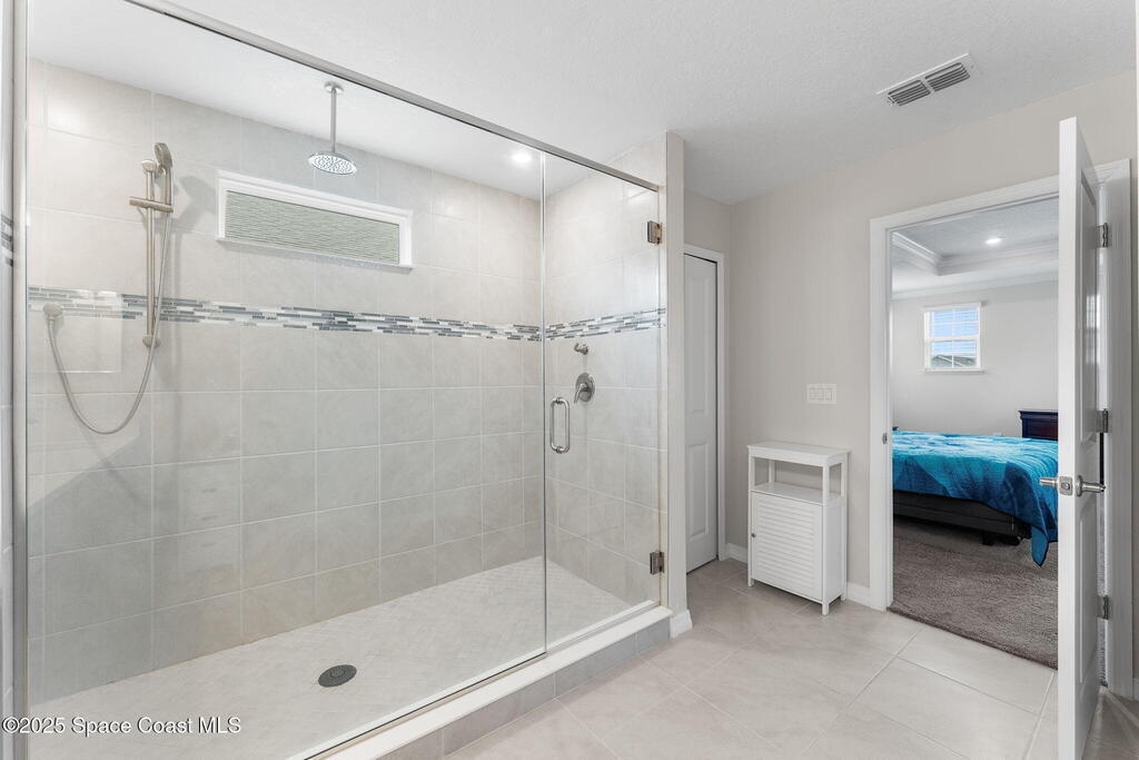 Step into the WOW FACTOR - a 2023-built lakefront stunner in Palm Bay's gated enclave. This 6-bedroom, 4.5-bath, 2-story home has space for everyone plus a 3-car garage to match. From the covered front porch to the open-concept island kitchen with quartz counters and surround sound system, every detail is dialed for modern living. Upstairs, retreat to your primary suite with a spa-worthy walk-in shower, walk-in closet, and laundry just steps away (yes, laundry upstairs-game changer!). Bonus: a full guest suite downstairs for visitors or multi-gen living. Tile and carpet flooring, a full security system, manual storm shutters, and a backyard lake view worth lingering over round out the perks. Big family? Big dreams? Big vibes? This one's got you!