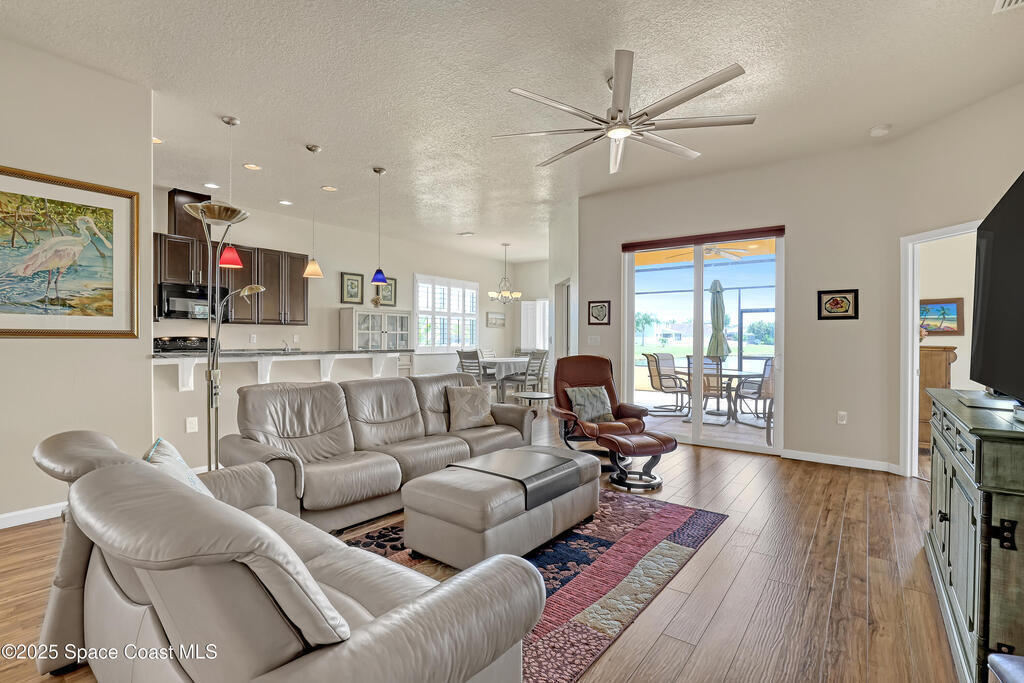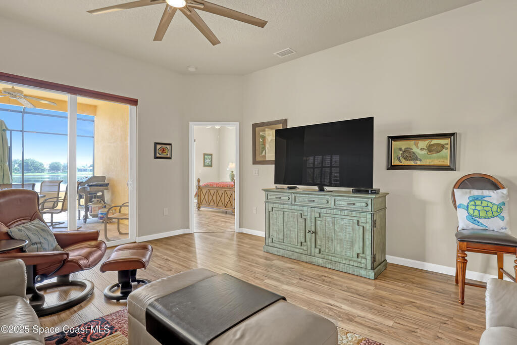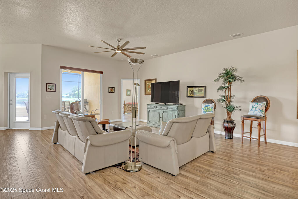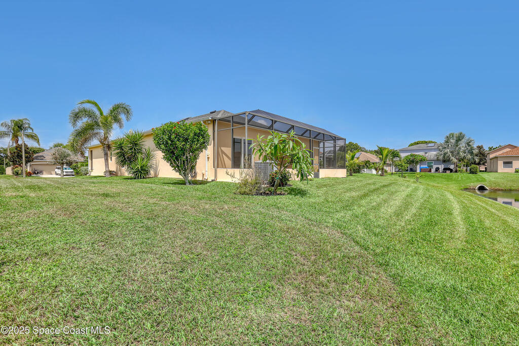 ***Save Big: 1% lender credit (based on loan amount) toward closing costs or rate buy-down with seller's preferred lender. Ask for details!***This waterfront home is exceptional on every level! Impact Glass on all doors and windows. Alabaster sills. Luxury Vinyl Plank flooring throughout. 10-ft ceilings. Solid Core interior doors. Premium interior wall insulation. Premium cabinets, and drawers, with soft close hinges. Plantation shutters in the kitchen, office area, BRs 2 & 3, master bath and bath #2. Remote controlled shades cover the sliding doors to the Lani from the living-RM and master-BR, as well as the transom window. The master bath has a double vanity and an oversized walk-in shower with a built-in seat. An oversized screened in extended lanai looks east across the lake offering beautiful sunrises and the comfort of shade from the afternoon sun. New AC in 2023, owned Solar Hot water heater. Sold furnished or unfurnished. All high-end furniture, and art, included at no cost.