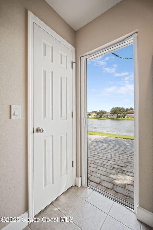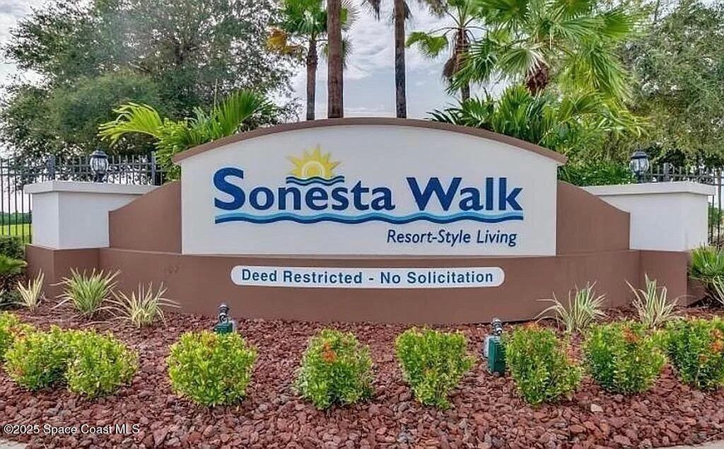 Must see Sonesta Walk! Just 15 minutes from the ocean and 5 minutes from shopping, offering the perfect blend of convenience and tranquility. Enjoy a stunning water view of the lake from your paved patio recently re-sanded and sealed. The owner had sidewalks and driveway power washed and landscape groomed. The interior features elegant granite countertops, two pantries for ample storage, and an updated bathroom with a custom shower that has just been steam cleaned and resealed. The home also boasts freshly cleaned carpets, new roof in 2023, AC 2021, accordion shutters, a tankless hot water heater and includes a newer 55'' smart TV. There's a UV light and Ecobee added to the air conditioner for control from your phone, and a Ring alarm for security. The garage has shelving for storage. This is a quality, well maintained home with a resort style community swimming pool, lawn care and irrigation at $100 HOA monthly.! This townhome truly has it all!