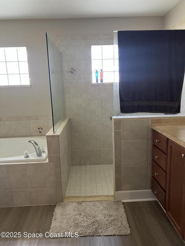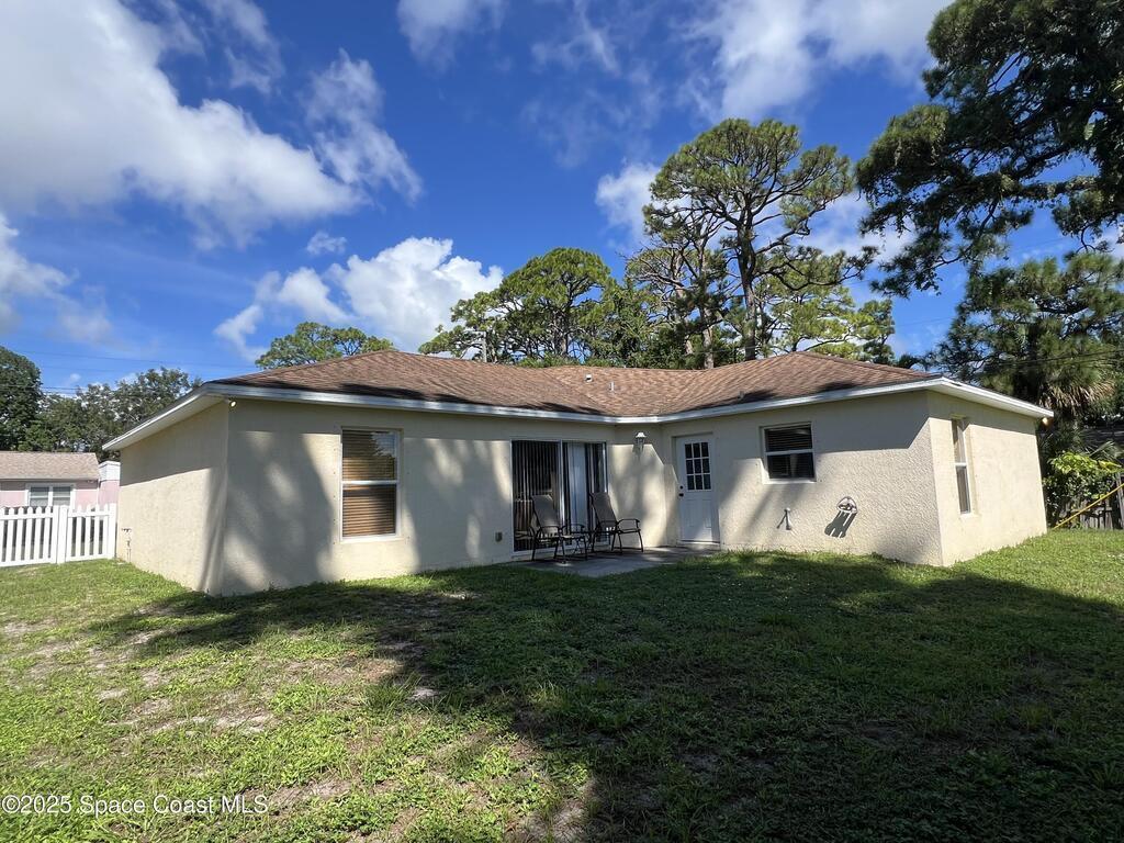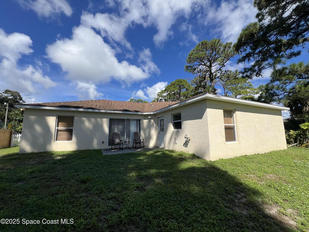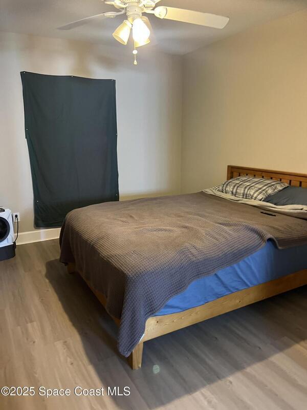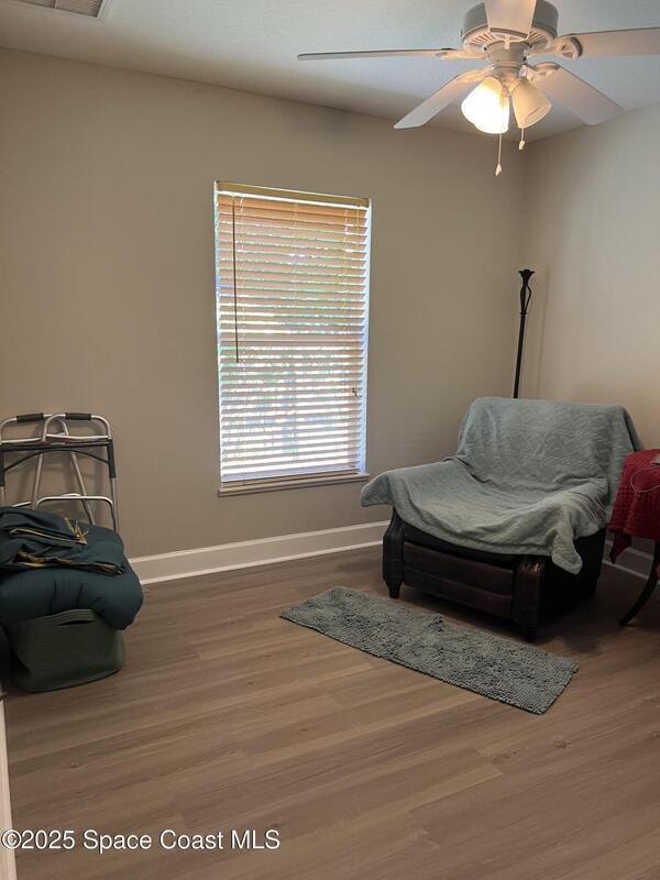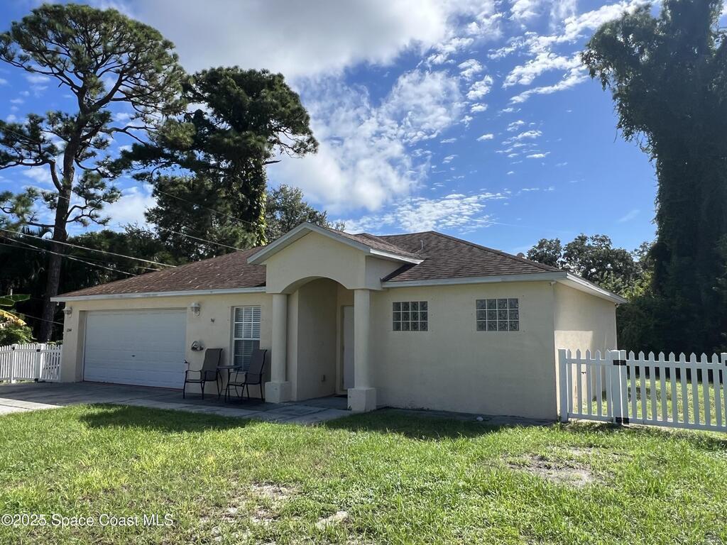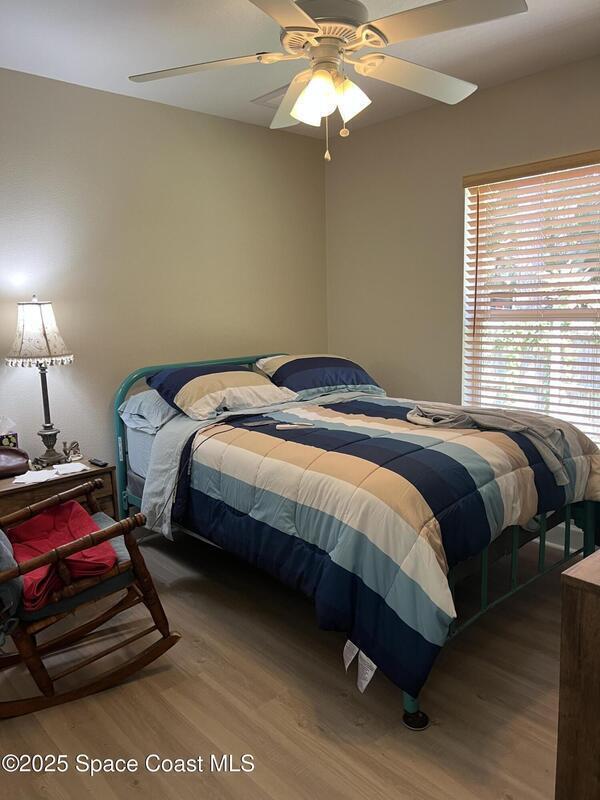 Tucked away on a quiet street in South Merritt Island, this move-in ready home offers recent updates and plenty of space. A new white vinyl fence (2025) adds curb appeal and privacy, while the HVAC was replaced in May 2025 for peace of mind. Inside you'll find fresh flooring, an open living area with natural light, a spacious kitchen with solid wood cabinets, and a split plan with comfortable bedrooms. The primary suite features a soaking tub, walk-in shower, and glass block window for added light. With no HOA, you'll have the freedom to park a boat or trailer, and the fenced yard is perfect for pets, entertaining, or simply relaxing under Florida skies. Ideally located near top schools, Cocoa Village, beaches, and rocket launches, this home is a strong choice for first-time buyers, investors, or anyone looking for a low-maintenance Merritt Island lifestyle.