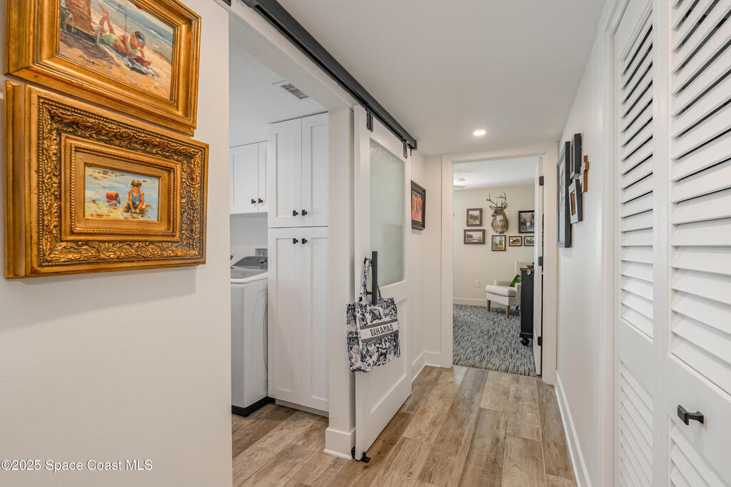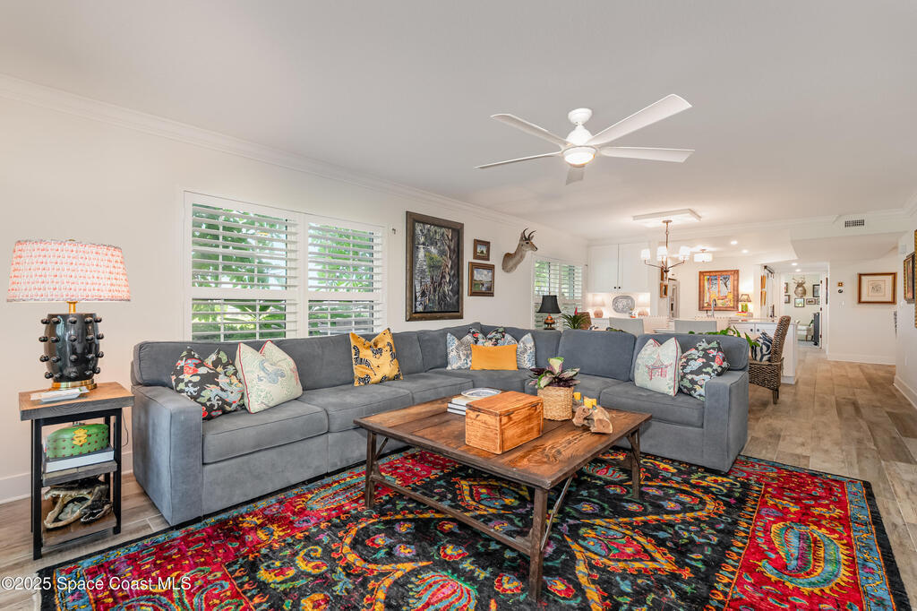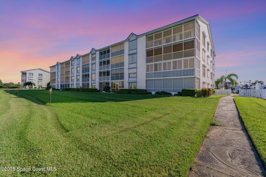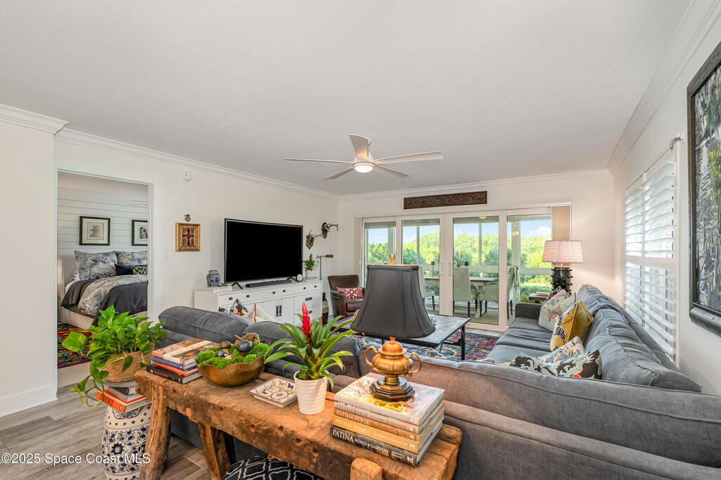 Discover the pinnacle of Florida living in this direct riverfront,1st-floor, end unit condo just 2 blocks from the ocean & walkable to downtown Cocoa Beach. Meticulously renovated with Southern Living charm, this immaculate 3-bed, 2-bath offers 1,736 sq ft plus an additional 200 sq ft finished air-conditioned patio overlooking the intercoastal. Enjoy sunsets and tranquil water views from your private patio. Fully remodeled including a Gourmet kitchen, spa-like baths, built-in bar, abundant natural light, open concept living. Brand new AC w/UV Light & air purifier, tankless water heater, impact hurricane rated windows & shutters. Harbor Isles features 3 pools, multiple tennis courts, clubhouse w/ fitness center, billiards, riverfront boardwalk, boat/kayak launch, RV/boat storage & more. Move-in ready, Furnished, and Designed for comfort & style. Private/deeded one car garage included & so much more. Hoa includes water, sewer, trash, TV, Internet, Exterior maintenance & Insurance.