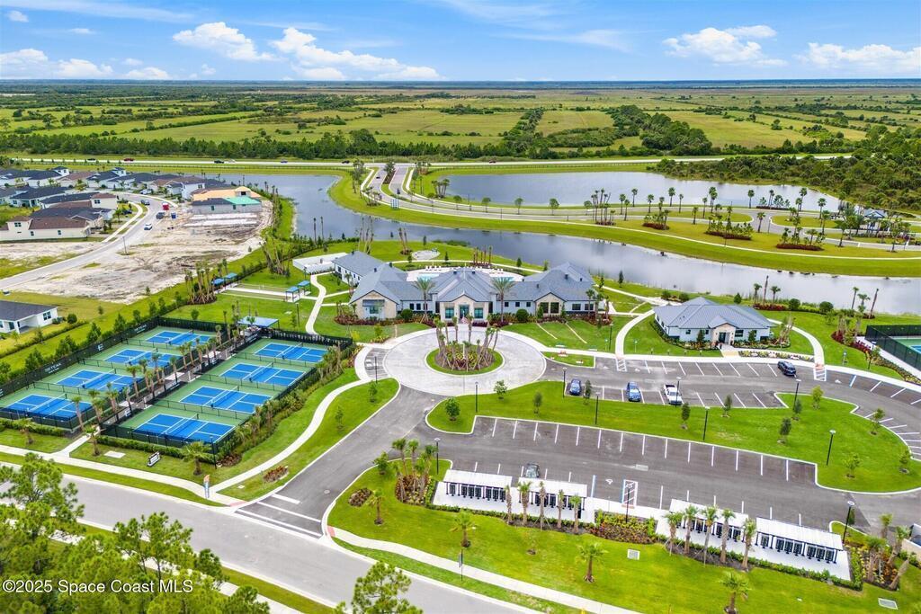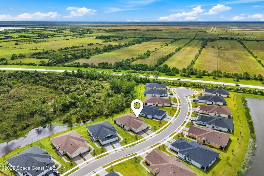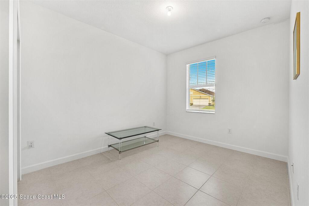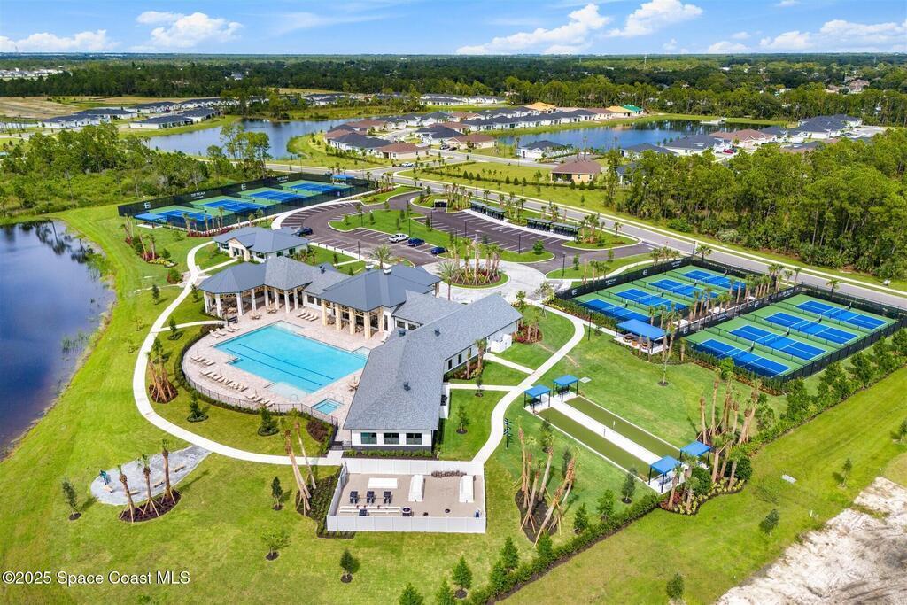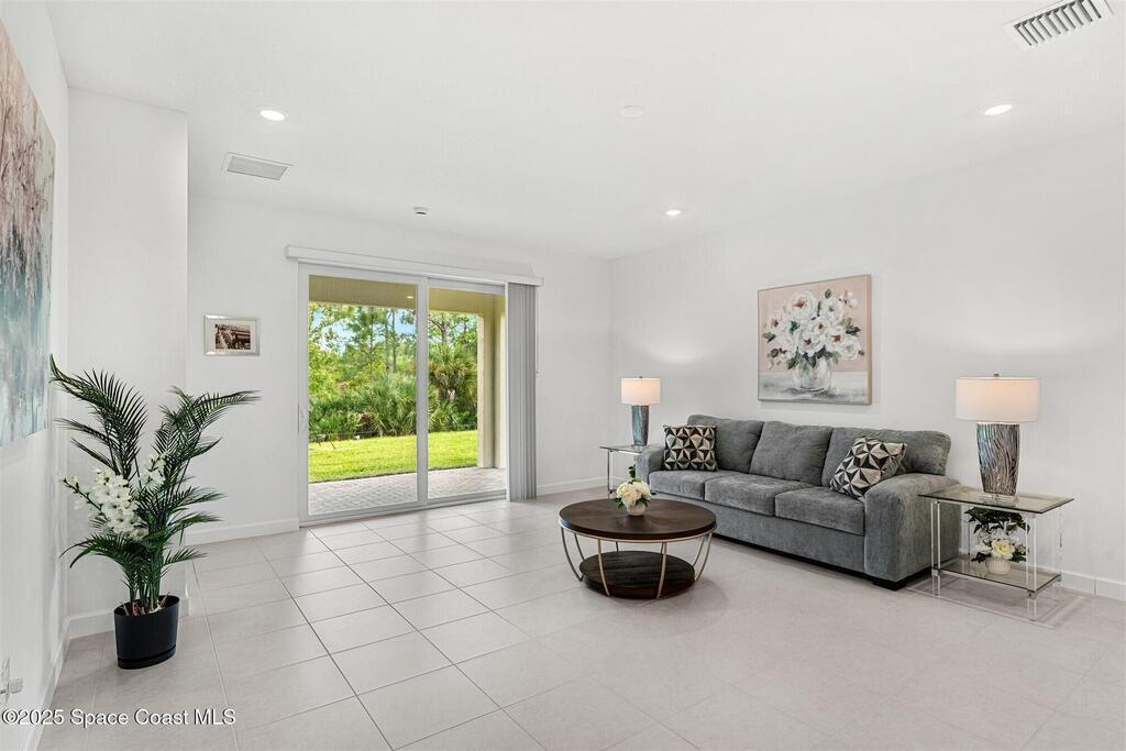Must See, less than one year old, 1794 sq ft, 3 bedroom plus flex area, 2 bath, 2 car garage home in The Timbers at Everland, the sought after 55+ resort style community in Northwest Palm Bay! This 2024 built meticulous home backs up to a lush private conservation area and includes IMPACT WINDOWS and SLIDER, which make hurricane season stress free! Must have features including white kitchen cabinets with marble look quartz counters, tile throughout, and window blinds throughout are included in this beautiful home! All furnishings available for an additional $5,000. Unwind at the brand new private clubhouse, featuring a large heated pool and spa, fitness room, aerobics studio, card room, dog park, putting green, fishing dock, tennis and pickle ball courts, bocce, and even a movie theater! And the HOA covers your home's lawn care! Short car ride to Atlantic beaches! Close to shopping and dining. One hour drive to MCO, cruise port!