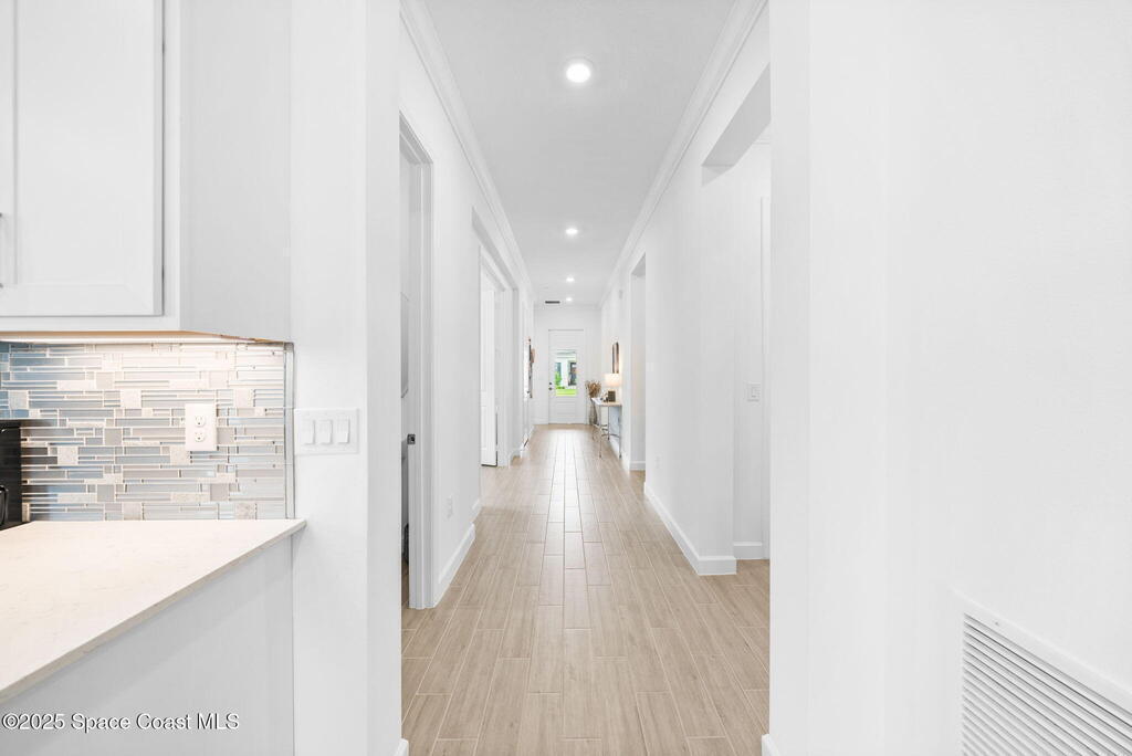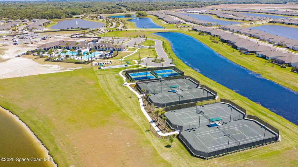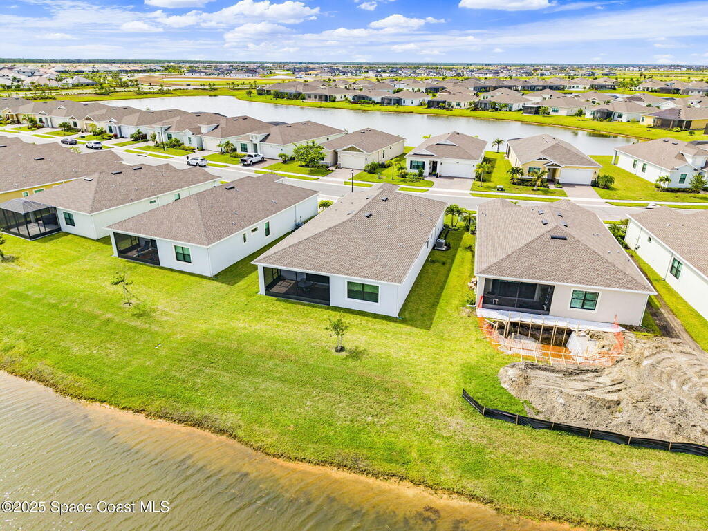 Welcome to Bridgewater at Viera, one of Brevard's most sought-after 55+ communities. Great value here! This 3 bedroom + FLEX room with closet, 3.5 bath home was built in 2023 and offers the popular Key Largo floor plan with 2,375 SF of thoughtfully designed living space. Inside, you'll find an open layout with upgraded PLANK TILE floors throughout (no carpet!), CROWN MOLDING, and all IMPACT WINDOWS and SLIDERS. The kitchen is a showstopper with crisp white cabinetry, QUARTZ countertops, tile backsplash, and plenty of space for entertaining. The primary suite feels like a private retreat, featuring a spa-style bath with double vanities, an oversized walk-in shower, and a huge closet. Two of the guest bedrooms have their own PRIVATE en-suites, perfect for visiting family or friends. Step outside to a screened-in patio overlooking PANARAMIC LAKE VIEWS with southeast exposure, perfect for sipping coffee during sun-filled mornings and unwind at the end of the day with shaded evenings. MORE