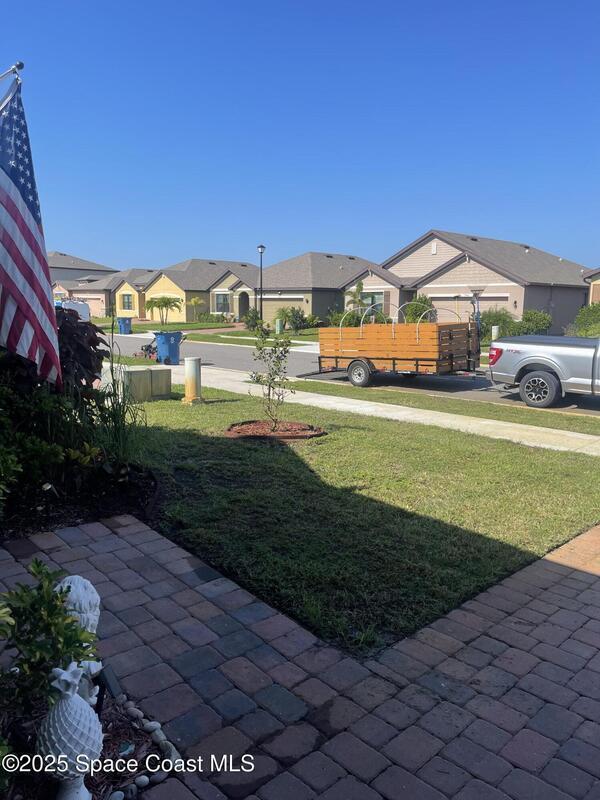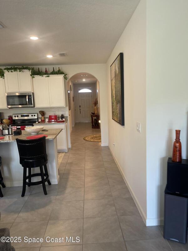 This beautifully maintained 4-bedroom, 2-bathroom home has 1,916 square feet of comfortable living space in the gated community of Bayside Lakes in Palm Bay. Designed for both functionality and style, the home features a spacious, open floor plan with an extended living area and a bright family room connected to the modern kitchen. The kitchen is equipped with upgraded stainless-steel appliances, granite countertops, and white cabinetry with crown molding. Ceramic tile flows through the main living areas, with cozy carpeted bedrooms. Step outside to a covered lanai has peaceful views of the canal and added privacy. The home includes a 2-car garage and is situated on a lot with no rear neighbors. Community amenities include a future pool, cabana, and tot lot, along with access to the Bayside Lakes clubhouse and amenities. Partially furnished and located near parks, shopping, and dining, this home combines comfort, convenience, and security in a sought-after neighborhood.