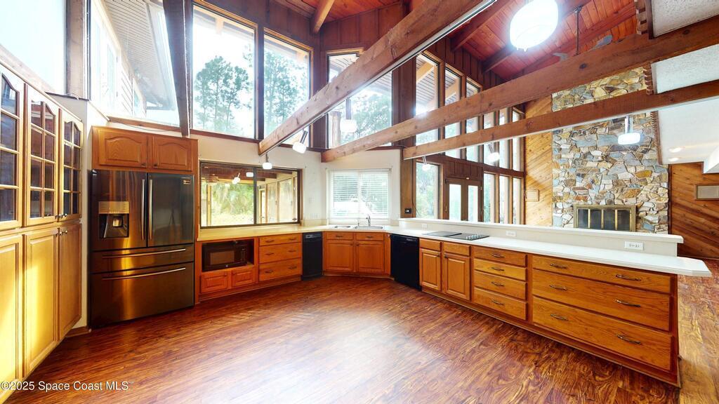 REDUCED $$$ 'COUNTRY-IN-THE-CITY' POOL HOME Nestled in a Highly Sought-After West Melbourne Location (NO HOA). This Home, Offered for The First Time Is Perfect for the Large or Multi-Generational Family. Set on a Generous 3/4 Acre Corner Lot at the End of a Peaceful Cul-de-Sac, This Property Offers a Serene Atmosphere, Providing the Perfect Balance of Tranquility and Convenience. Spanning 3,984 Square Feet Under Air, This Classically Designed 5-Bedroom, 4.5-Bathroom Features A Large Recreation Room w/Full Bath, Easily Convertible to In-Law Quarters On The Ground Floor. Inside You'll Find an Expansive Layout Featuring a Spacious Family Room, Formal Dining Area, Living/Den/Flex; and a Huge Country-Style Eat-In Kitchen with Newer Appliances & Butler Pantry. Soaring Wood-Beamed Vaulted Ceiling and Artistic Rock Fireplace Add a Sense of Grandeur & Openness; Abundance of Natural Light makes the Space Feel Warm & Inviting. See Supplement For List of Updates/Amenities. Motivated Seller!