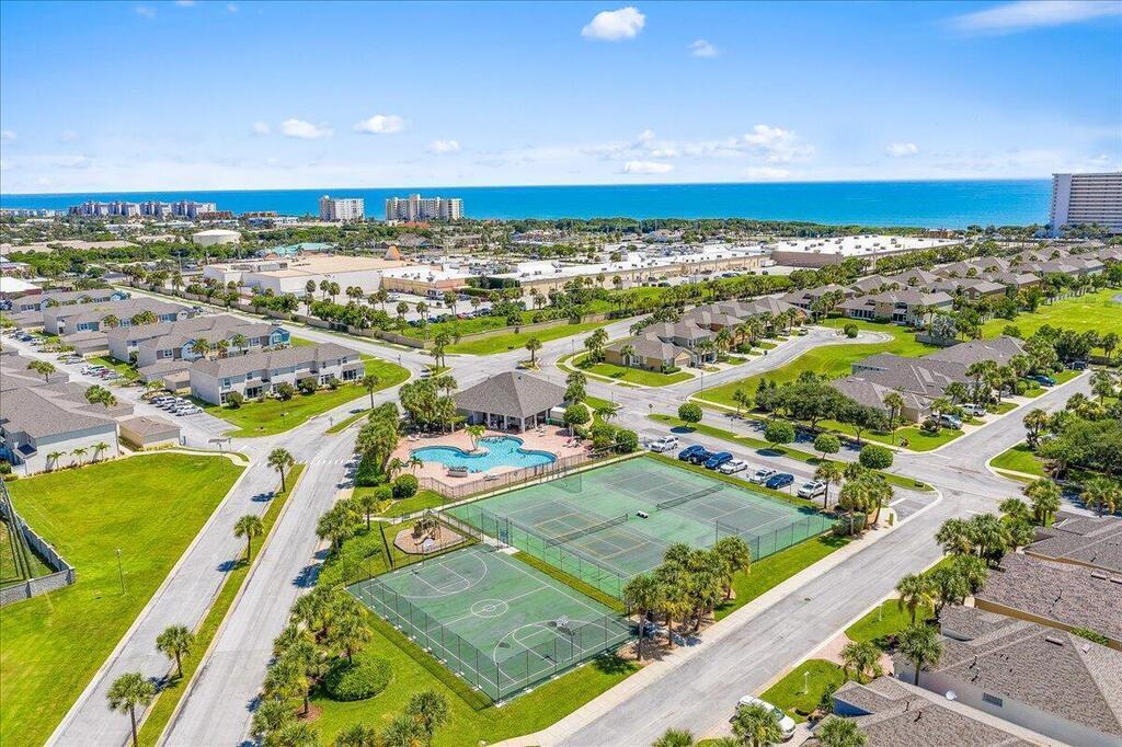 Live the ultimate MAINTENACE FREE lifestyle ''BEACHSIDE'' in this beautiful END UNIT townhome located in GATED Oceanside Village. Start your morning by walking to the ocean to collect sea shells, surf the waves or watch breathtaking rocket launches. HOA maintains entire exterior including roof, painting & lawn service so save thousands on your Insurance Policy. Sellers are offering $2,500 towards new appliances! 2 Master Suites w/private bathrooms each to include a tub & a shower! A one car detached garage is just steps away & new impact windows offer peace of mind. Practical updates include a 2023 AC condenser, a 2022 gas hot water heater & new landscaping to enjoy while sitting on your private, screened porch. Enjoy resort-style amenities just minutes away which include a sparkling swimming pool, pickleball, tennis & basketball courts, tot lot & a clubhouse with a billiard table. Makes for a great full-time residence or coastal getaway! Close to shops, restaurants & coffee bars!