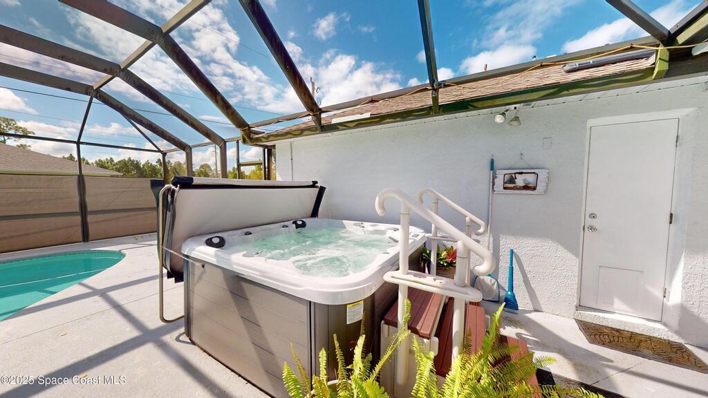 NEW PRICE! AND $5,000 FOR BUYER'S CLOSING COSTS! Stunning 4-Bedroom/2-Bath POOL HOME WITH FULL SIZE HOT TUB/SCREEN ENCLOSURE. REMODELED KITCHEN, GRANITE & STAINLESS APPLIANCES. Situated on an oversized lot with mature landscaping, this CBS (Concrete Block Stucco) constructed home boasts exceptional quality and attention to detail. Featuring hurricane-rated front storm and garage doors, along with accordion and panel shutters throughout the remainder of the home. As you enter, you'll be welcomed by soaring cathedral ceilings that create an open and airy atmosphere throughout the living spaces. The formal living & dining rooms provide an elegant setting for entertaining guests, while the spacious family room offers a relaxed area for everyday living. Adjacent to the family room is a cozy breakfast nook, perfect for enjoying casual meals. The versatile den/office can easily be used as a fourth bedroom, providing flexibility to suit your needs. The heart of the home (please click more)