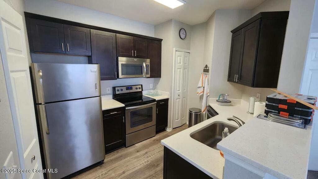 Welcome to your serene retreat nestled in Lakes at Viera East gated community. This charming one-bedroom, one-bathroom condo offers a perfect blend of comfort and luxury on the third floor, providing breathtaking lake views.Step inside to discover an inviting open floor plan, bathed in natural light The living area seamlessly connects to a well-appointed kitchen. The bedroom promises restful nights,offering tranquil lake vistas to greet you each morning. The bathroom is elegantly designed, boasting contemporary fixtures and a relaxing atmosphere.Outside, the community pool and gym await. Dive into the sparkling pool for a refreshing swim. Security and privacy are paramount in this gated enclave, ensuring peace of mind. Has its own Storage. This condo not only provides a comfortable living space but also a lifestyle of convenience close to stores, restaurants. Don't miss the opportunity to make this lake-view haven your new home. Pet not to exceed 25 lbs.