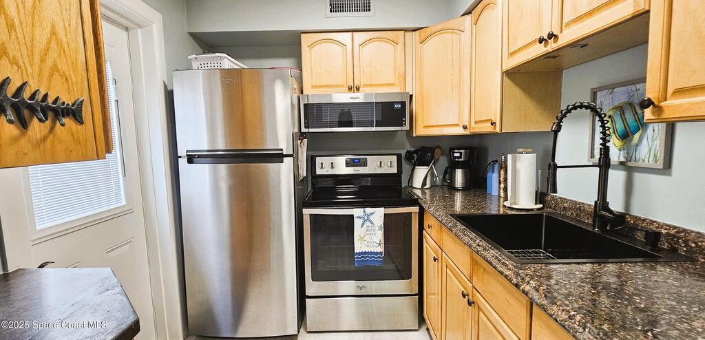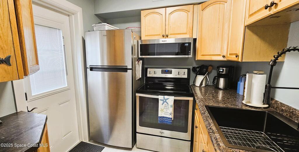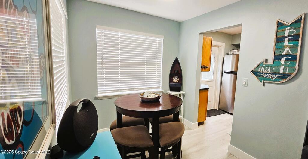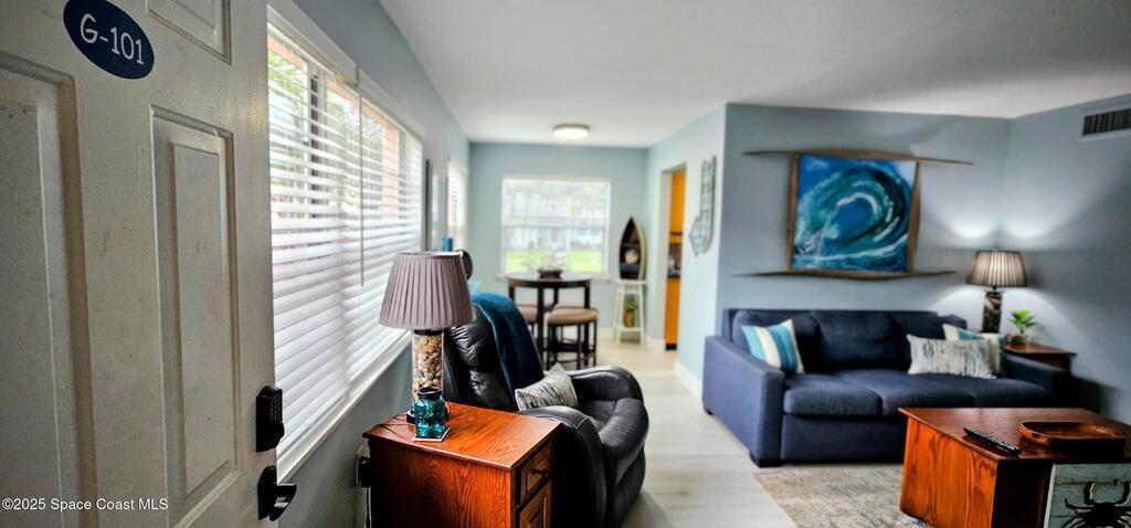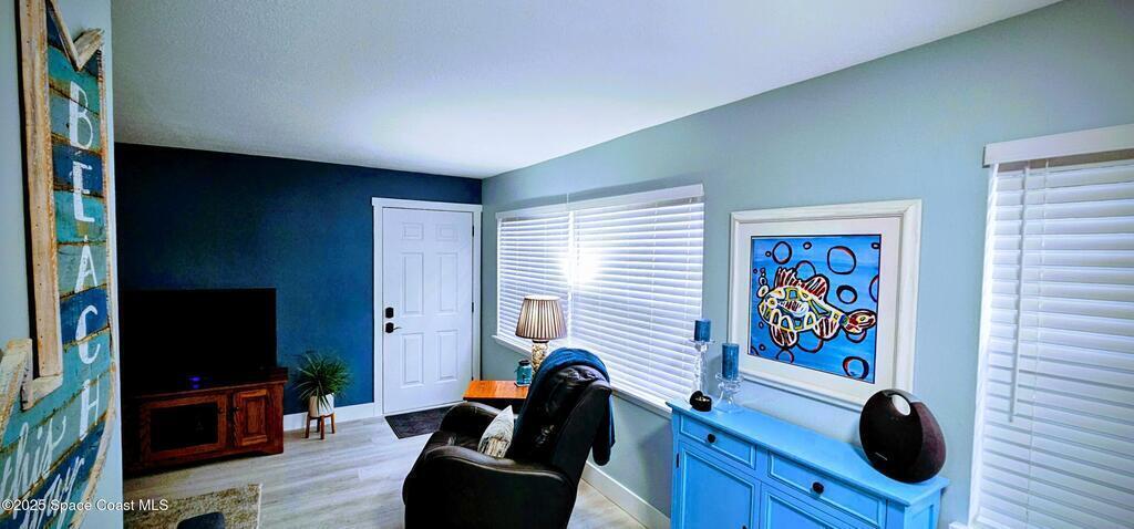 Feel the ocean breeze in this tastefully updated beachside condo, perfectly situated in a gated community just a short distance from the shore! This desirable first-floor unit radiates pride of ownership with updates throughout, including: new flooring, baseboards, paint, closet doors, and fixtures. Stylish new vanity and modern finishes. 2019 instant hot water heater and updated 100-amp electrical panel.BONUS FEATURE: guests can arrive through the landscaped gated commons area or enjoy the convenience of direct access from the assigned parking space to your private kitchen entry--complete with a charming sitting area just outside the door of this private corner unit. 2018 roof and impact windows in the bedroom and bathroom for peace of mind.Enjoy the ultimate coastal lifestyle--just a short stroll to the beach, dining, cruise ships space center, surf shops and all that this sought-after area has to offer. And within 45 minutes from two major Airports (Orlando & Melbourne).