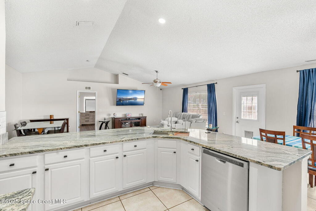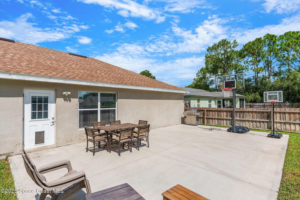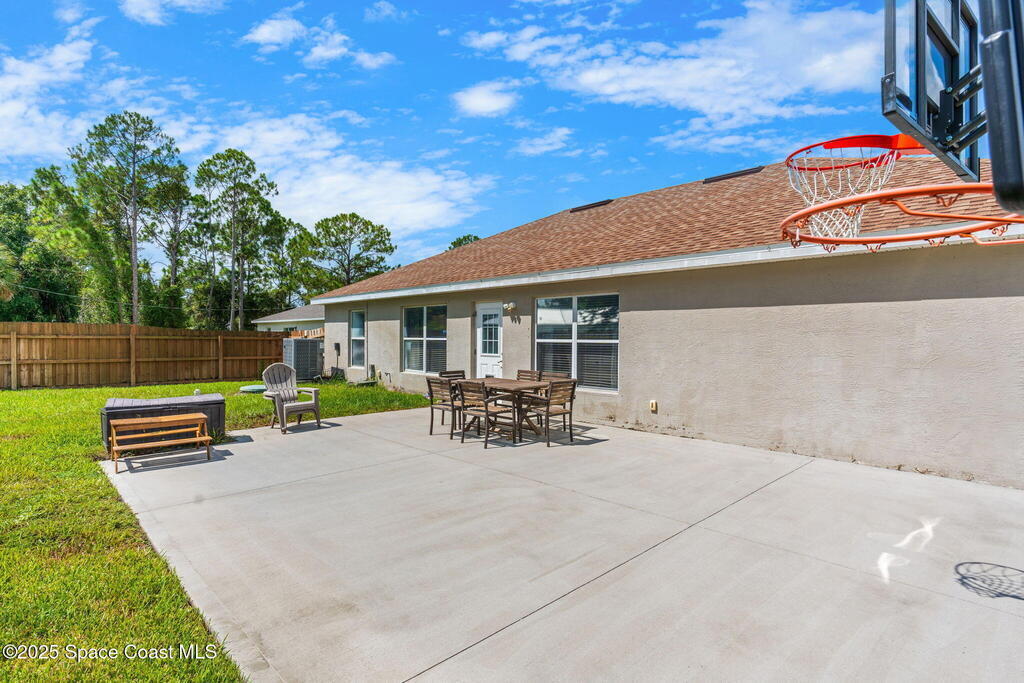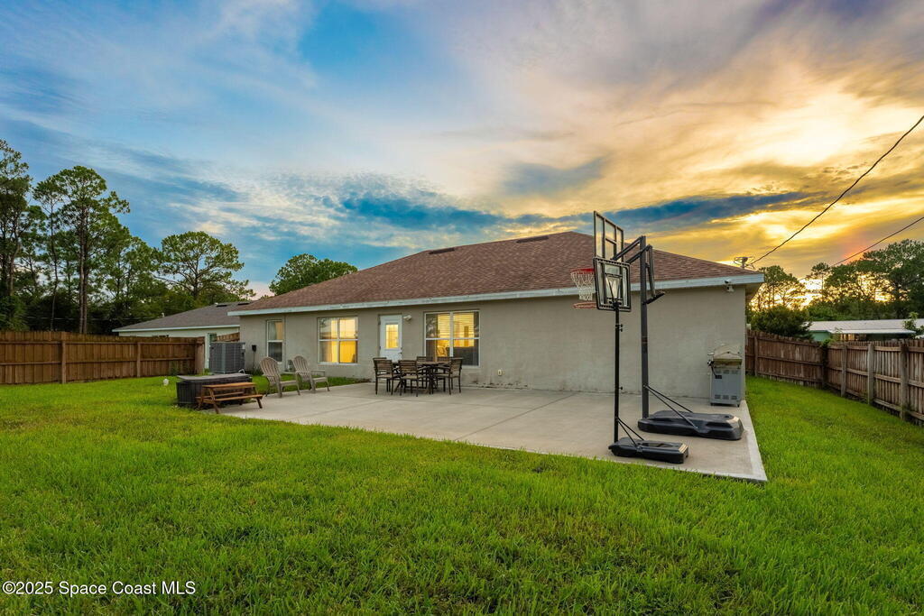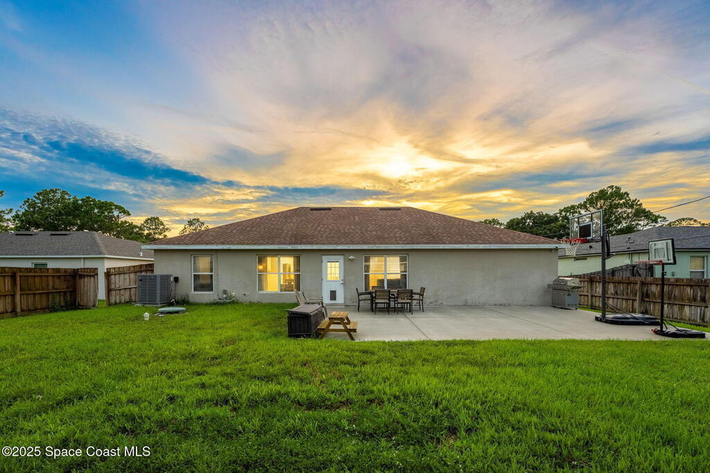 Welcome to 413 Grenadier Avenue NW, a move-in ready Palm Bay home designed with both comfort and versatility in mind. Featuring 3 bedrooms, 2 bathrooms, and 2 dedicated flex/office spaces (rare), this 1,858 sq. ft. residence offers a split floorplan and open concept living ideal for modern lifestyles. The kitchen shines with Granite countertops and stainless steel appliances, while wood and tile flooring flow throughout. Recent upgrades include a brand-new HVAC system (2024), a whole-house water osmosis system, and a shingle roof (2017). The concrete block construction, full set of storm shutters, and fenced yard provide peace of mind. A spacious backyard with poured concrete slab is perfect for a basketball court, entertaining, or future outdoor projects.