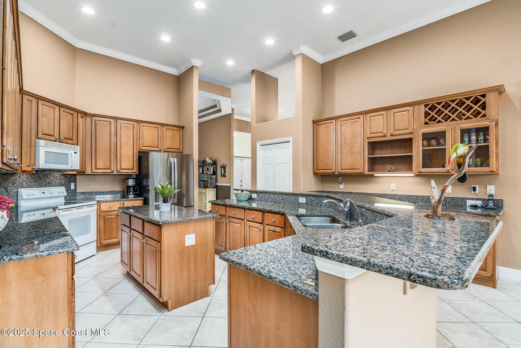 Your private beachside paradise awaits! This rare 2001-built pool home on a sprawling 0.41-acre lot with no HOA is just 1 mile from Indialantic's shore. Soaring 12' ceilings & crown molding create an air of grandeur. The spacious kitchen is a chef's delight, with granite counters, abundant cabinets, a small island & desk area. Entertain in formal living & dining rooms, or relax by the family room fireplace. The primary suite is a retreat, with tray ceilings, dual walk-in closets, a jetted tub & pool bath access for seamless indoor-outdoor living. Step out to the supersized screened lanai, with room for patio & dining sets, perfect for alfresco dining by the sparkling pool. Hurricane accordion shutters protect the porch & sliding doors. Extras: oversized 2-car garage, new 2022 AC, central vac & under-sink water filtration. A rare opportunity to own a larger beachside property close to top schools, dining, shopping & the beach. Easy location, minutes to causeways & daily conveniences.