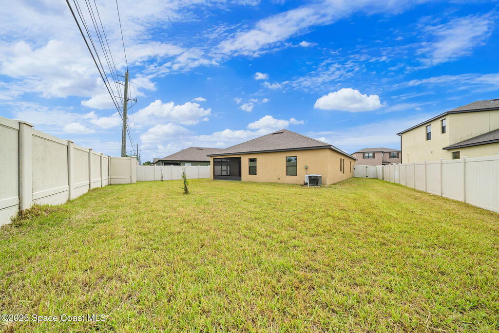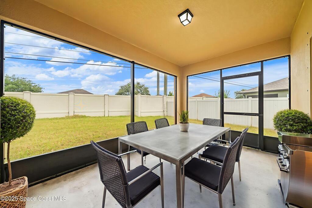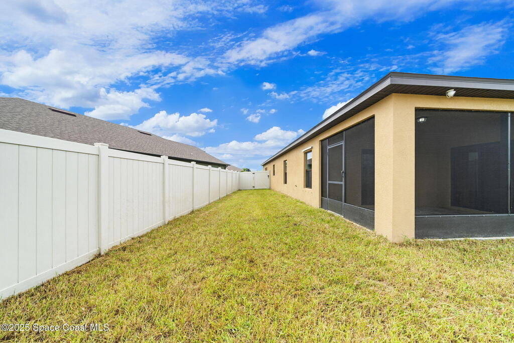 Welcome to this beautiful 2020-built Glenhurst model in the highly sought-after Palm Cove community of Rockledge! Built on one of the neighborhood's largest lots, this popular floor plan features an open layout with a bright kitchen boasting white shaker cabinets, granite countertops, and a large island that flows seamlessly into the spacious living and dining areas. The 18'x12' flex room with French doors is perfect for an office, playroom, or formal dining space. The owner's suite impresses with two walk-in closets, double vanities, a tiled shower, and a relaxing garden tub. Enjoy outdoor living on the screened patio overlooking the oversized, private fenced backyard. Additional upgrades include a new HVAC system, Low-E double-pane windows, storm shutters, and a brick-paver driveway. Centrally located minutes from The Avenues at Viera, I-95, beaches, and all the Space Coast has to offer, with a short commute to Orlando.