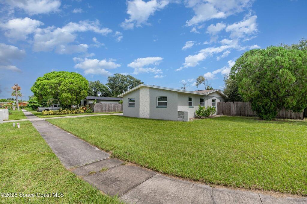 Great new price on this move-in ready gem which is perfect for first-time homebuyers or those seeking more space! Situated on a corner lot, this solid concrete block 4 bedrooms and 2 full baths home has a lot to offer. Step inside to find a freshly painted interior, new ceiling fans throughout , and newer floor Tile in each bedroom. With a roof which is about 3 years old and Hurricane rated impact windows, you can have peace of mind for years to come. A One-car garage provides convenient parking, additional storage and a space to get laundry done.Having a large lot lets you enjoy the outdoors with a roomy fenced backyard--ideal for kids, pets, or weekend gatherings. Smack dab in the middle of Merritt Island, you're just minutes from schools, shopping and the anticipated new Cape Canaveral Hospital being built... making this a smart investment in a growing area.Don't miss your chance to own a well-maintained home in one of Merritt Island's most convenient locations!