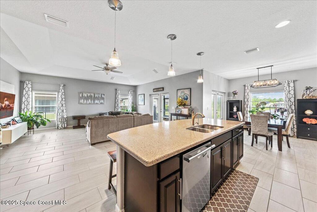 Welcome to your dream home in the highly sought after Sawgrass Lakes community! This stunning 4 bedroom, 3.5 bathroom home features a spacious open-concept layout ideal for entertaining and family living. Enjoy a dedicated office for work or study and a private guest suite with its own entrance and kitchenette, perfect for multi-generational living or long-term guests. Step outside to a screened-in patio overlooking peaceful waterfront views. The 3 car garage offers ample space for vehicles, storage, or a home gym. Residents enjoy resort style amenities including a clubhouse, zero-entry pool with waterslide, fitness center, tennis courts, playground, and walking trails. Located minutes from A-rated schools, premier shopping, and top restaurants, this home truly has it all, comfort, style, and an unbeatable location.