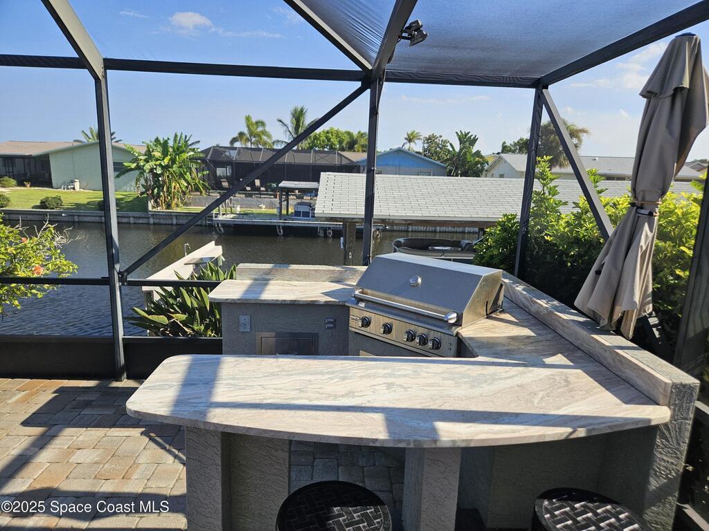 Beautiful direct canal 5 bedroom, 3 bath home with a pool and spa. Lap in luxury, this home has it all. A great home for entertaining, boating or just relaxing. The canal leads to the Banana River and is close to Port Canaveral. Features include a master bedroom downstairs and has a solar heated pool with built in grill, built in bar with wine cooler and a screened in lanai with patio pavers. Designed with an open floor plan with a split bedroom. Second story has 2 bedrooms and a full bath. This home has granite tops, plantation blinds, gas fireplace, a shed, a generator, natural gas and a dock with a boat lift. Home has a been well maintained and has so many upgrades along with landscaping throughout the the front and back of the home . This home is priced to sell.