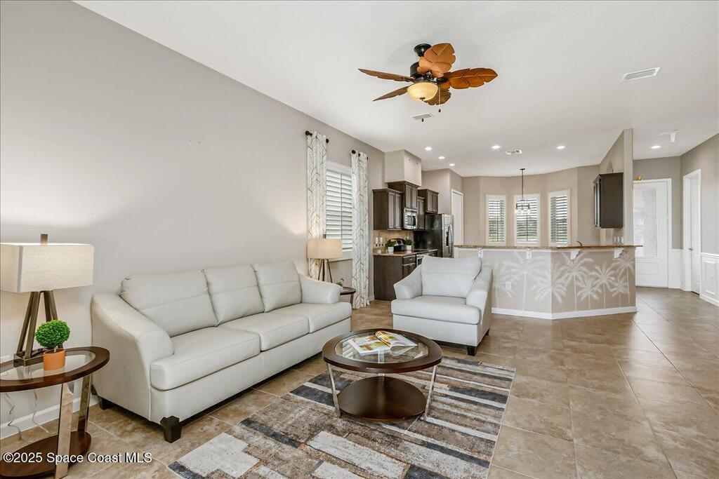 Experience Space Coast living at its finest in this beautifully maintained 3-bedroom, 2-bath home with a 3-car garage in the highly desirable 55+ gated community of Alamanda Key.This light-filled residence combines comfort, privacy, and resort-style living. The open floor plan features a spacious living room that flows seamlessly to a screened patio, where you can enjoy morning coffee with peaceful water and preserve views. The cheerful eat-in kitchen offers a bay window overlooking the lake, plus ample cabinetry and counter space for everyday cooking or entertaining. The dining room provides an inviting setting for gatherings, while easy-care laminate and tile floors add warmth and low-maintenance style throughout the home. A pavered driveway and welcoming entry create charming curb appeal, and ample storage ensures everything has its place.Residents of Alamanda Key enjoy resort-style amenities including a clubhouse, swimming pool, fitness center, an landscaping maintenance.