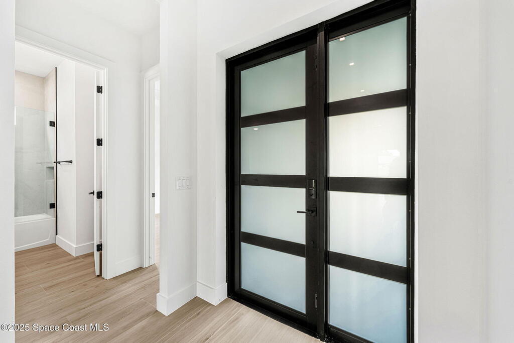 Seller offering 2/1 Rate buy down of $10,026 w/1st year interest rate of 4.25%. Step into a home that blends modern design, innovative features, and the peace of mind only new construction can provide. Built by Brevard's Builder of the Year, this award-winning residence is move-in ready. From the paver driveway and 8' impact-rated entry door to the lush landscaping, every detail sets the tone for quality and style. Inside, soaring 10' ceilings, oversized windows, and porcelain tile floors create a bright, inviting space that feels both spacious and warm. The gourmet kitchen is the heart of the home with frameless wood cabinetry, Quartz countertops, a large island, two pantries, and Samsung BeSpoke appliances designed for everyday living and entertaining alike. Smart home automation, impact-rated windows and doors, and an EV charger plug make life seamless, while added upgrades--solid wood interior doors, Kohler fixtures, blinds, and gutters--showcase thoughtful craftsmanship.