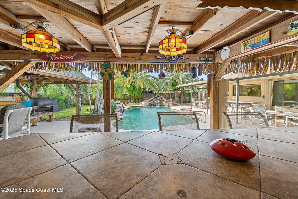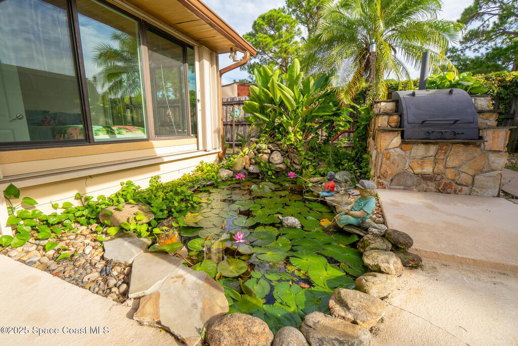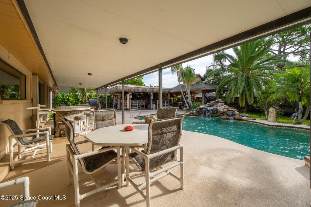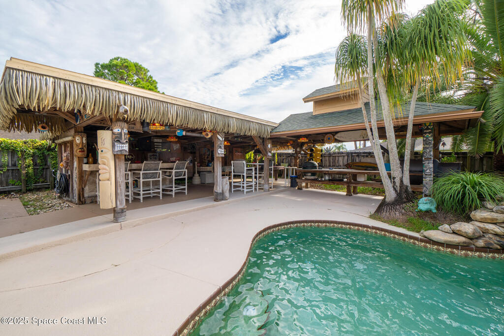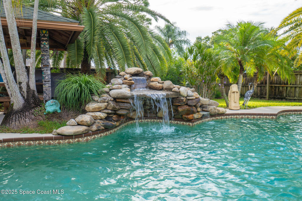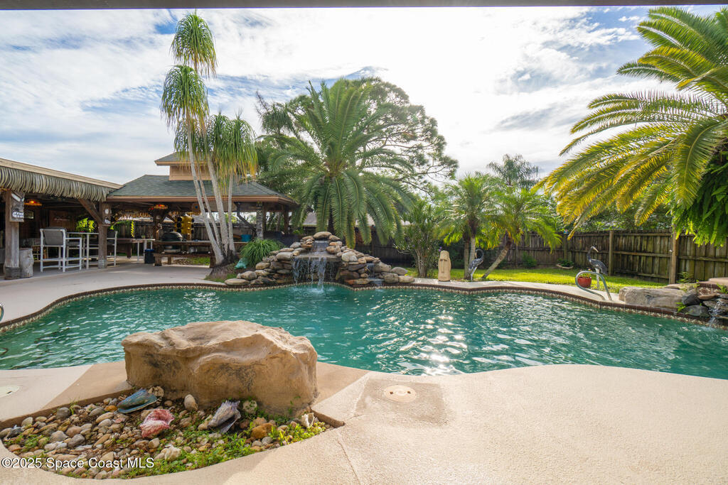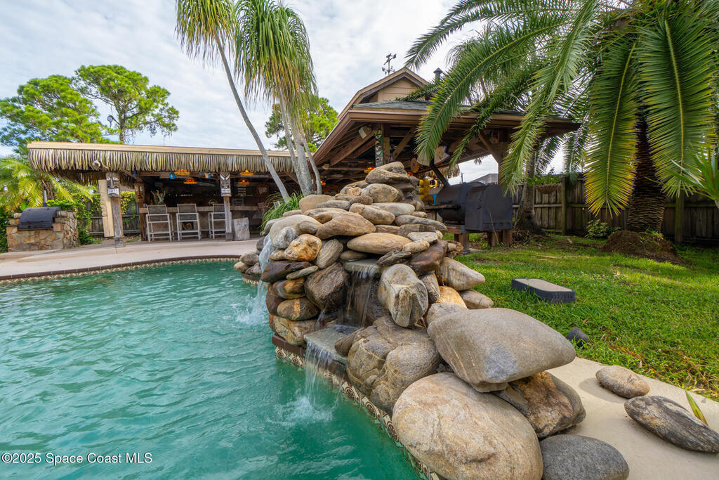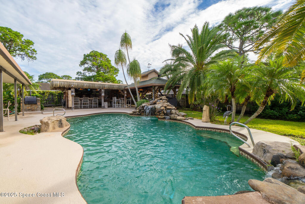 Looking for a pool home the heart of Port St John? Look no further! This one of a kind pool home is full of custom features inside and out. The inside features 3 bedrooms, 2 bathrooms, office space or 4th bedroom, air-conditioned laundry room, electric fireplace, and a custom kitchen. The kitchen was recently remodeled and features granite countertops, newer appliances, and a large bar top with room for bar stools. The backyard is your new oasis that features a large swimming pool with 2 waterfalls & a jacuzzi, a koi pond, tiki bar, tropical landscaping with multiple pineapple palms, built in speaker system, multiple cooking areas, and still has plenty of room for your pets. You can choose to cook on the big green egg, smoker, or custom-built grill. Imagine spending your weekend in your new backyard BBQing, swimming, playing pool, and having a margarita. There is plenty of parking with the extended driveway that provides space to park your boat, RV, or cars with no HOA restrictions.