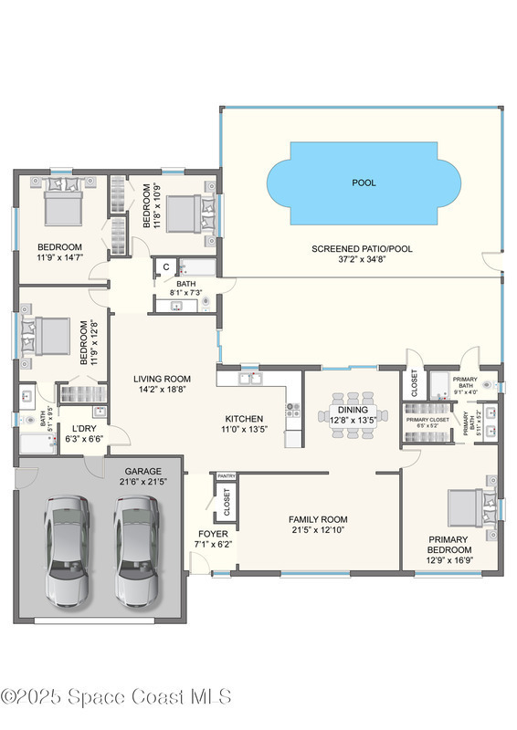 Bedroom 2 , Bedroom 3 , Bedroom 4 , Dining Room , Family Room , Kitchen , Laundry , Living Room , Primary Bedroom
