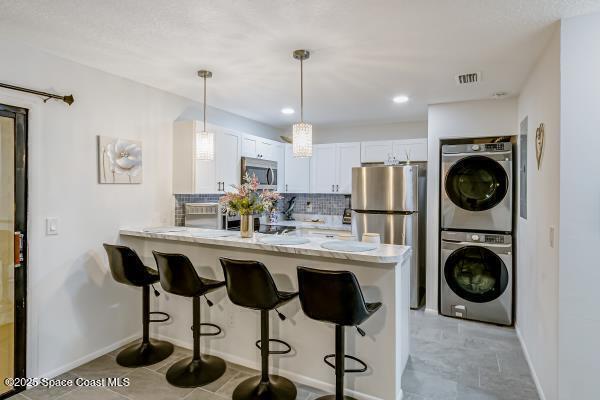 Welcome to this beautiful and unique Corner end, One story 2BD/2BA Townhome in Oakwood Villas! The front entrance provides a private screened Courtyard patio that's a perfect spot for morning coffee and outdoor relaxation. The beautiful glass entry door leads you to an open-concept design that enhances the living space, seamlessly connecting the living room, dining area, and kitchen. This lovely home features new non-slippery Porcelain tile floors throughout the unit, white kitchen cabinetry, S/S Appliances, Stackable full size Washer/Dryer, modern Light fixtures and ceiling fans. new Tankless Hot W/H and newer roof. This Unit has a second enclosed porch with entrance that provides additional living space, good for a workout room or an office. The HOA covers exterior maintenance, including Roof. Amenities include clubhouse, pool, tennis courts, playground. No Rental or Pet Restrictions. Close to shopping Malls, dinning, Melbourne Int'l Airport and is within 10 miles to the Ocean.