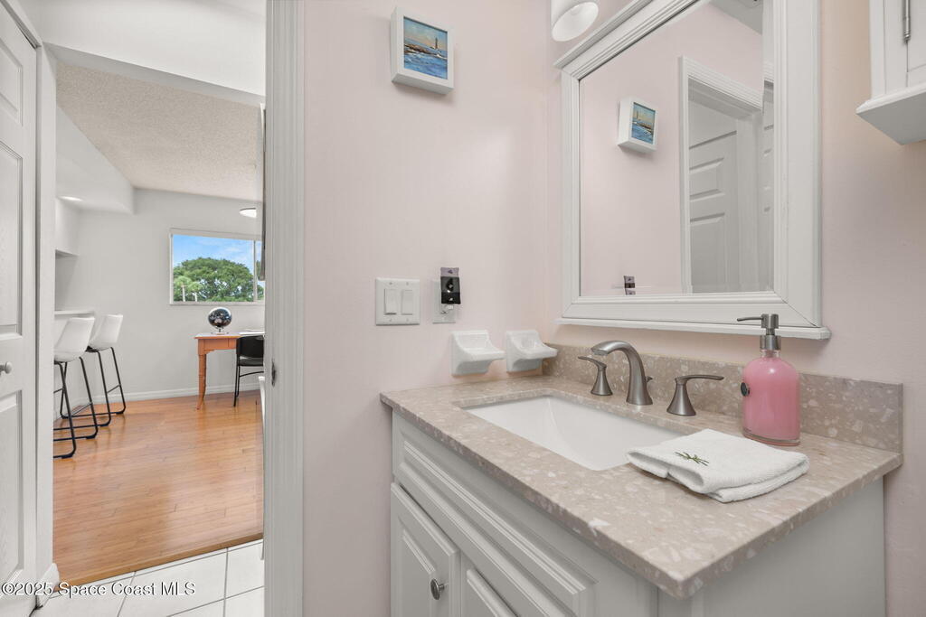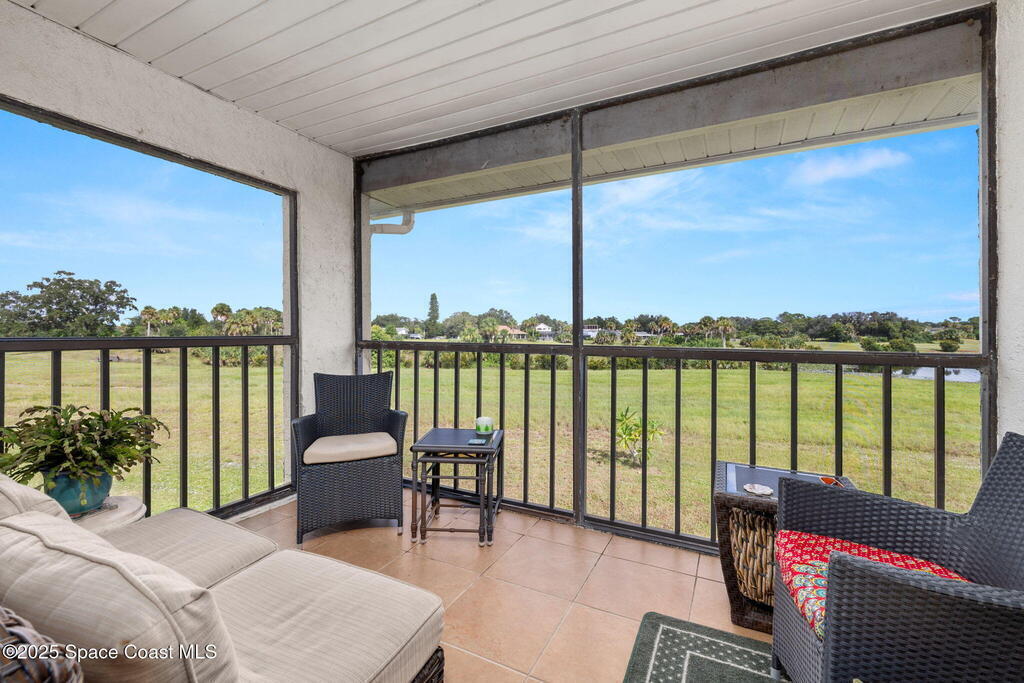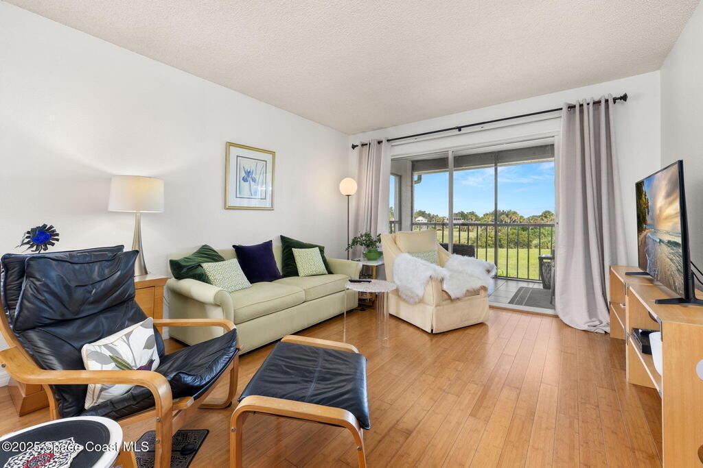 Experience Florida living at its best in this beautifully updated partially furnished corner-unit condo with western exposure, where you can enjoy gorgeous sunsets from your private screened balcony overlooking the former Royal Oak Golf Course. This 2-bed, 2-bath home features an updated kitchen with Wellborn cabinets, white quartz countertops, upgraded appliances, modern lighting, and bamboo wood flooring throughout. The primary suite offers a walk-in shower while the guest bath includes a tub/shower combo. Convenience is key with an in-unit LG washer & dryer (2024), plus peace of mind from recent updates: tankless water heater (2024), updated electric panel (2024), and A/C with heat pump (2016). Enjoy year-round sunshine at the heated community pool or watch rocket launches right from your balcony. This pet-friendly community allows two pets up to 24 lbs, making it the perfect blend of comfort and lifestyle. Don't miss your chance at purchasing this charming coastal retreat!