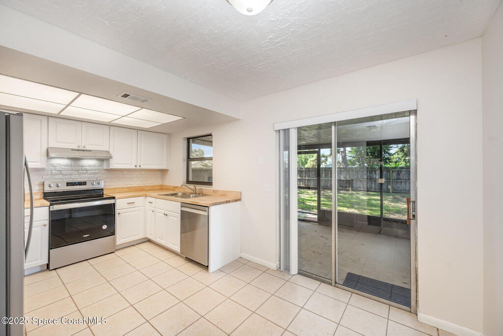 Welcome to this beautifully updated 3-bedroom, 2-bath single-family home in Cocoa with no HOA! Featuring a 1-car garage, this move-in-ready property offers comfort and convenience with stylish upgrades throughout. Inside, you'll find a bright open layout with tile and laminate flooring--no carpet anywhere. The remodeled kitchen shines with new cabinets, butcher block countertops, white faux-brick backsplash, and brand-new stainless steel appliances. The major systems are already taken care of with a newer roof and a new HVAC installed in May 2025. Enjoy outdoor living in the fully fenced backyard with a screened patio and a handy storage shed. The washer and dryer are located in the garage and convey with the sale. Centrally located near shopping, dining, schools, and easy access to I-95 and the beaches, this home is a perfect blend of updates and value.