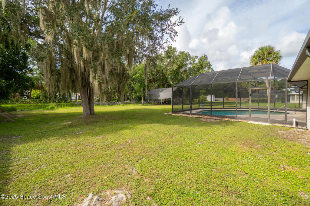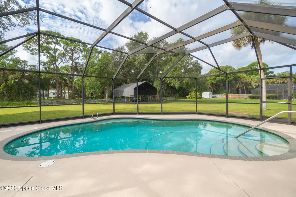 Discover rural Florida charm in this 3-bed 2-bath pool home on over half an acre of land in desirable neighborhood of The Ranches! The large backyard features covered storage for your RV, boat, and gear--perfect for outdoor enthusiasts! The great room features a brick fireplace and sliders to the screened pool and covered patio, a perfect spot to enjoy the outdoors or host gatherings. The primary includes an en-suite bath and plenty of closet space. The kitchen offers a breakfast bar and stainless appliances. The spacious 2-car garage has built-in shelving for additional storage. Recent updates include 2019 wood laminate flooring, 2020 roof, 2021 pool pump, and 2022 pool heater. 2025 upgrades are a new water heater, water supply re-pipe, newly painted pool deck, and septic service with pump-out. With quick access to I-95, Hwy 520, and Hwy 524, you're close to beaches, fishing, and hunting. The Space Center, Port Canaveral, and Orlando are minutes away. Schedule a private showing today!