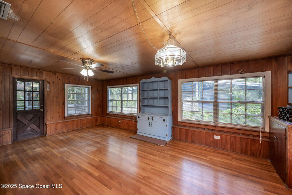 Celebrate Old Florida charm coupled w/delightful updates in this vintage cottage-style home. Distinct living & dining flow together for easy entertaining. Hardwood floors span throughout as 2 versatile flex rms present endless possibilities. One is a spacious step-down area off the kitchen, w/access to the screened porch. It's an ideal spot for a family or game rm. The other is a large step-down space w/entry to the garage & one of the 3 bdrms. This expanse could be an in-home office, a hobby hub, or gym. The kitchen fashions throwback character while offering white stone counters, a subway tile backsplash, white cabinetry, a SS refrigerator & dishwasher. The tub/shower bath is nicely updated w/a mid-century modern touch. Enjoy breezy evenings on the screened lanai overlooking a lush backyard. Washer & Dryer included. Reclaimed irrigation water saves you money! The Indian River is a block away & the shops & restaurants of Cocoa Village are an 8- minute bike ride!