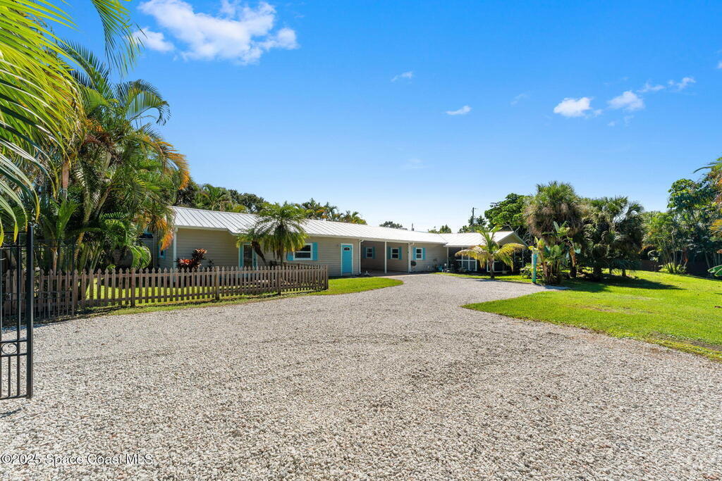 Set on over a third of an acre in Merritt Island with no HOA, this gated property offers both versatility and comfort. The main residence features 3 bedrooms and 2 baths, highlighted by a brand-new roof and a completely refreshed kitchen with new cabinetry and counters that bring a crisp, modern feel. Just beyond, a detached 1-bedroom, 1-bath cottage expands the property's appeal, whether for guests, extended family, or rental potential. The electric gate opens to ample parking, including dedicated RV space, while the property's size allows room to spread out without sacrificing privacy. Adding to its value, sewer service is already planned and covered by grant funding, eliminating future cost concerns. With a location that balances convenience and freedom from HOA restrictions, this home provides an uncommon opportunity to enjoy space, updates, and flexibility in one of Merritt Island's most desirable settings.