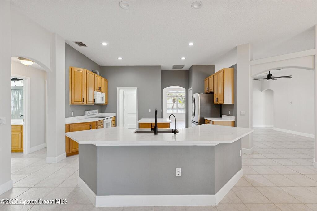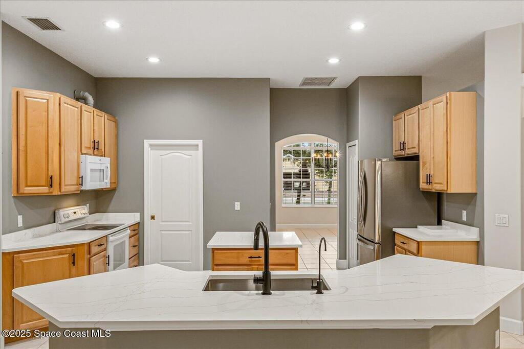 Sun, Savings & Style! This is the one you've been waiting for! Make every day feel like a getaway in this 4BR/3BA heated pool home with a sparkling water view in a gated community. Energy savings come easy with fully paid-off whole-house solar panels. The updated kitchen shines with quartz counters, deep stainless sink, RO system, and new dishwasher. Freshly painted interior and stylish new fixtures & ceiling fans give the home a modern touch. The spacious primary suite includes a sitting area which is perfect for an office, nursery or curling up with a good book. There's also his/her closets, and a spa-like bath with double vanities and jetted tub. Extra perks include an oversized garage with epoxy floor, attic flooring for storage, and zoned for top-rated schools! Roof 2020, solar panels 2024, water heater 2023, and new blower motor for HVAC. Great shopping and dining nearby, as well as easy access to I-95. Don't hesitate to schedule your private viewing today before it's too late!