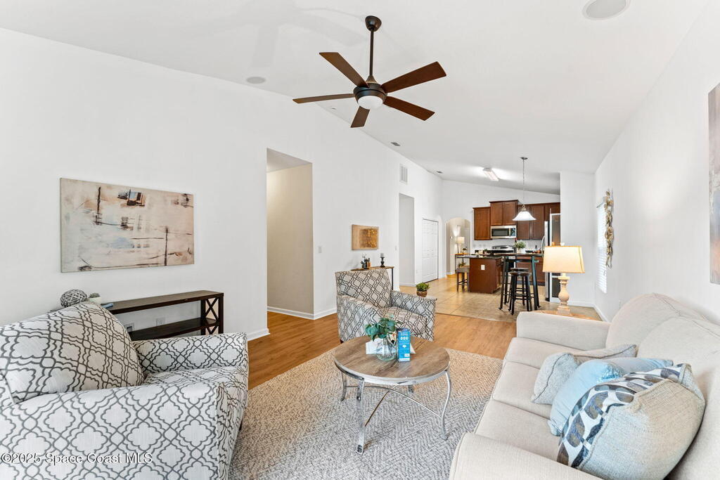 Tucked at the end of a cul-de-sac on an oversized lot, this home is all about good living. Inside, you'll find brand-new tile plus laminate floors, an open floorplan that flows with ease, and a kitchen built for connection- think island, breakfast bar, and a cozy eat-in nook. The split-bedroom layout delivers privacy, while the primary suite goes next-level with its own FLEX space - perfect spot for an office, spin bike, reading nook, or whatever vibe you're into. Interior perks like surround sound speakers keep the energy high, and out back a huge yard sets the stage for all your outdoor dreams-complete with a sparkling salt pool and spa. With a propane tank on site for spa heating, a shed for your extras, a new HVAC, and manual storm shutters, this one nails the balance of comfort, convenience, and vacation-mode living!