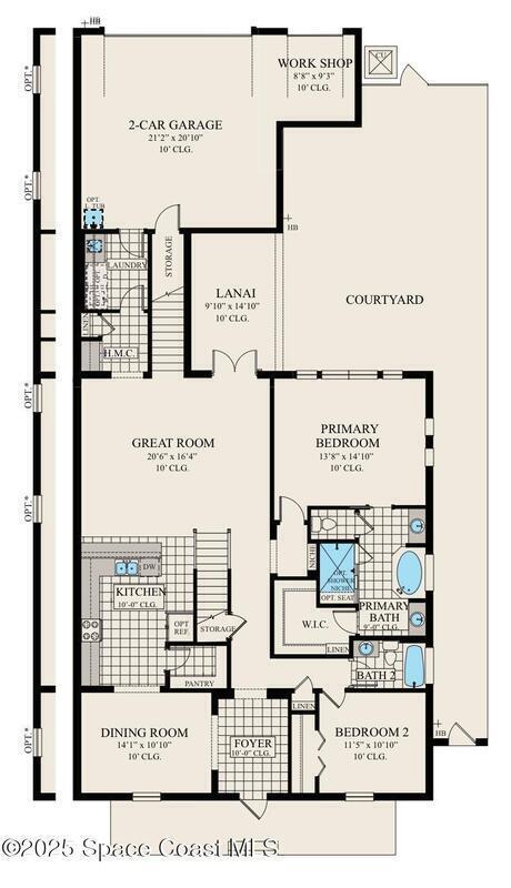 Almeria II is a sophisticated 2-story home featuring a great room and kitchen that overlook a gorgeous lanai. The master bedroom overlooks a spacious courtyard. Spend the evenings enjoying the sunset on the second story balcony. This home features a gourmet kitchen with walk-in pantry, bonus room with bath 4 and workshop.