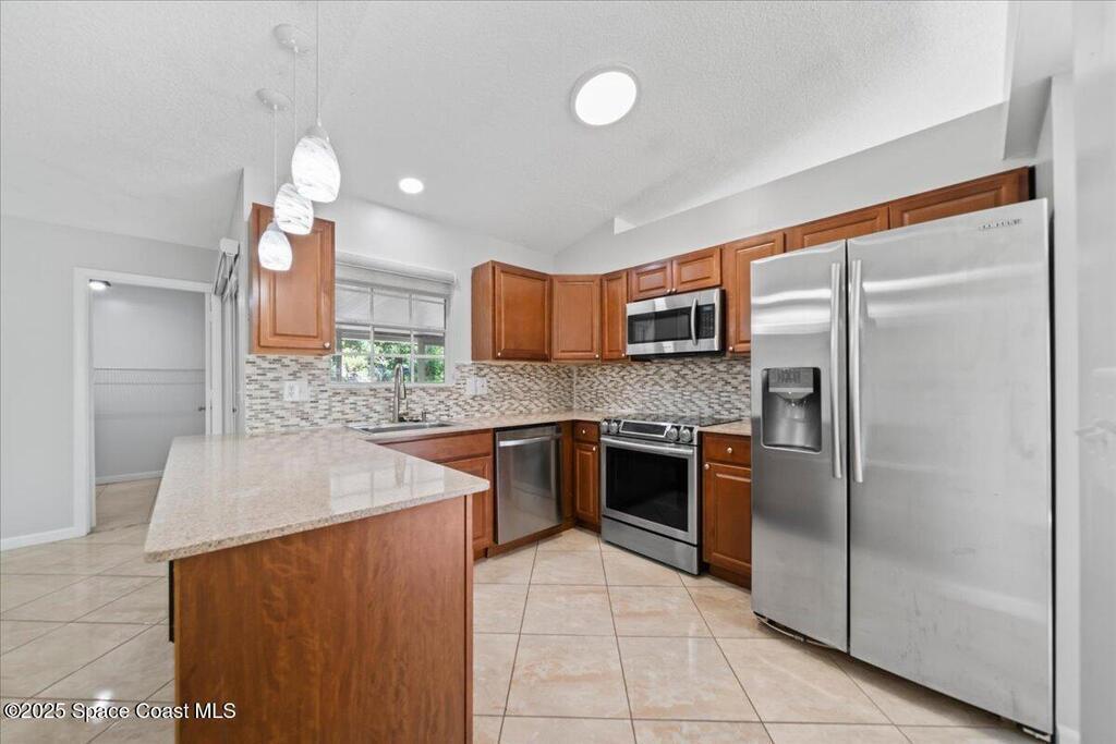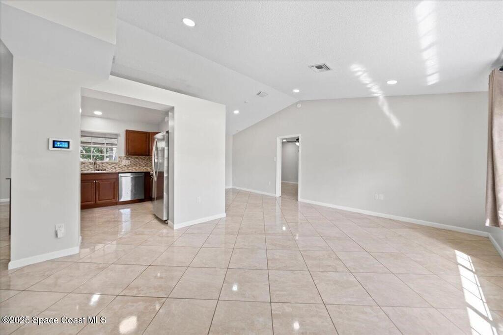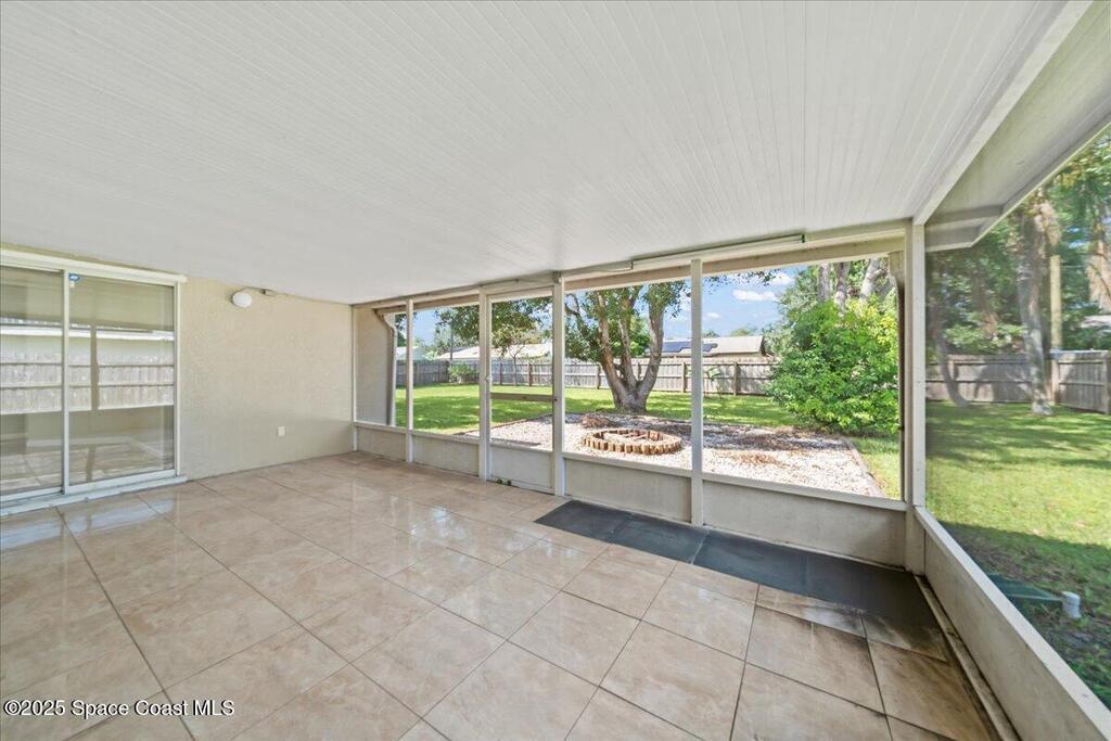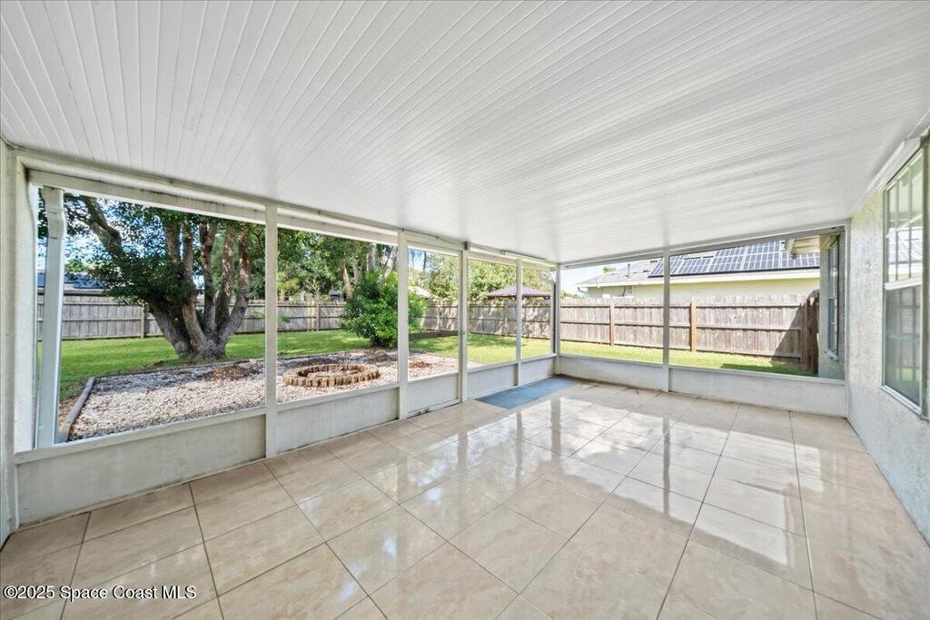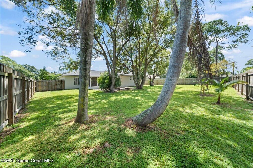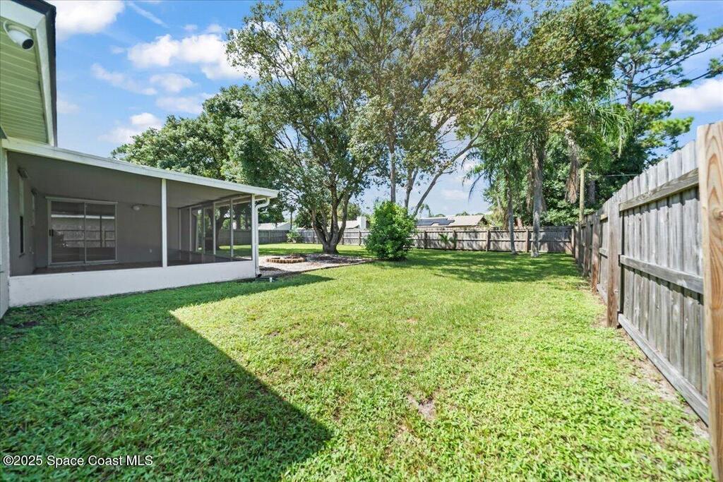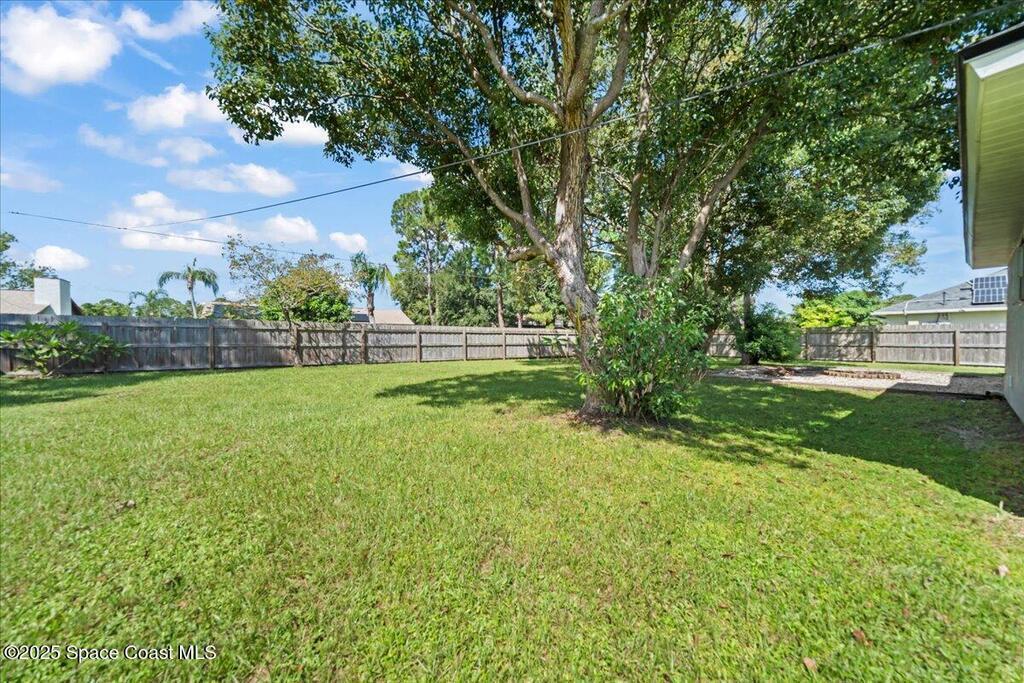 This 3 bed, 2 bath, 2 car garage home is perfect for first-time buyers or investors and move-in ready! As you enter the home you are greeted with vaulted ceilings and plenty of natural light. The home has tile throughout as well as new window treatments on all windows. The kitchen features granite counters and a wine cooler in the peninsula. Outside you will find a large screened porch, fully-fenced back yard with a large oak tree for shade, and a fire pit for the cooler nights. The roof and hot water heater were replaced in 2022 as well as fresh interior and exterior paint. The laundry room is inside the home, and washer and dryer convey. The home is centrally located with easy access to Malabar Road and I-95.