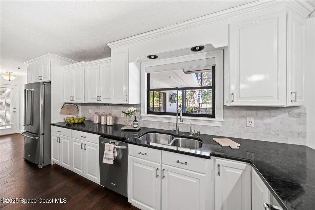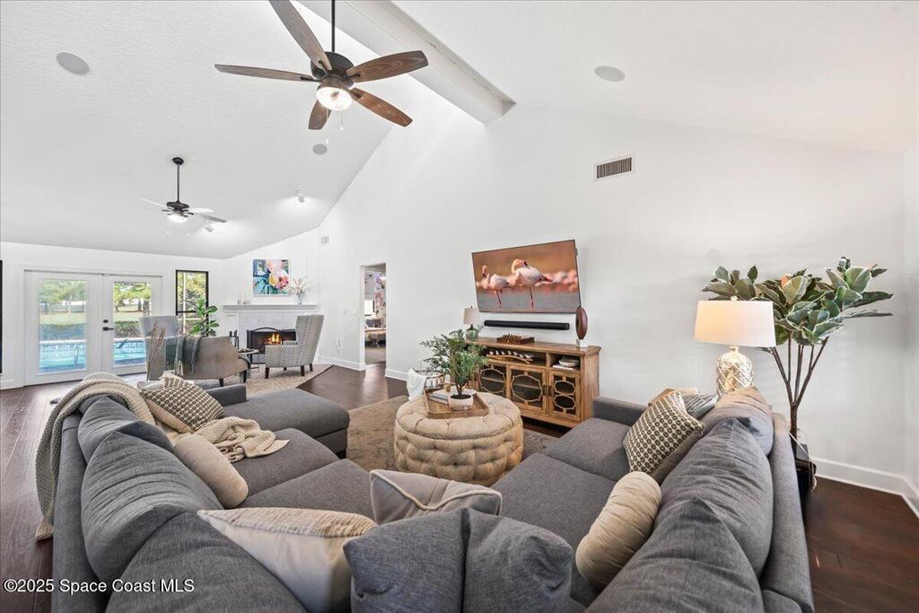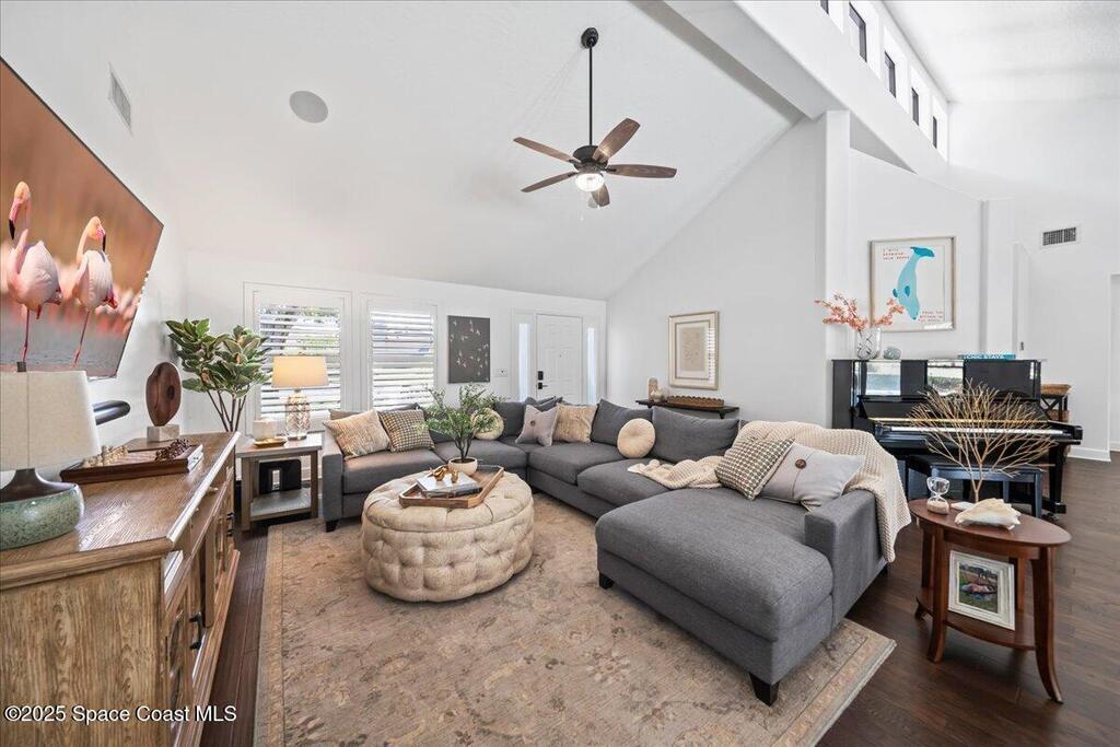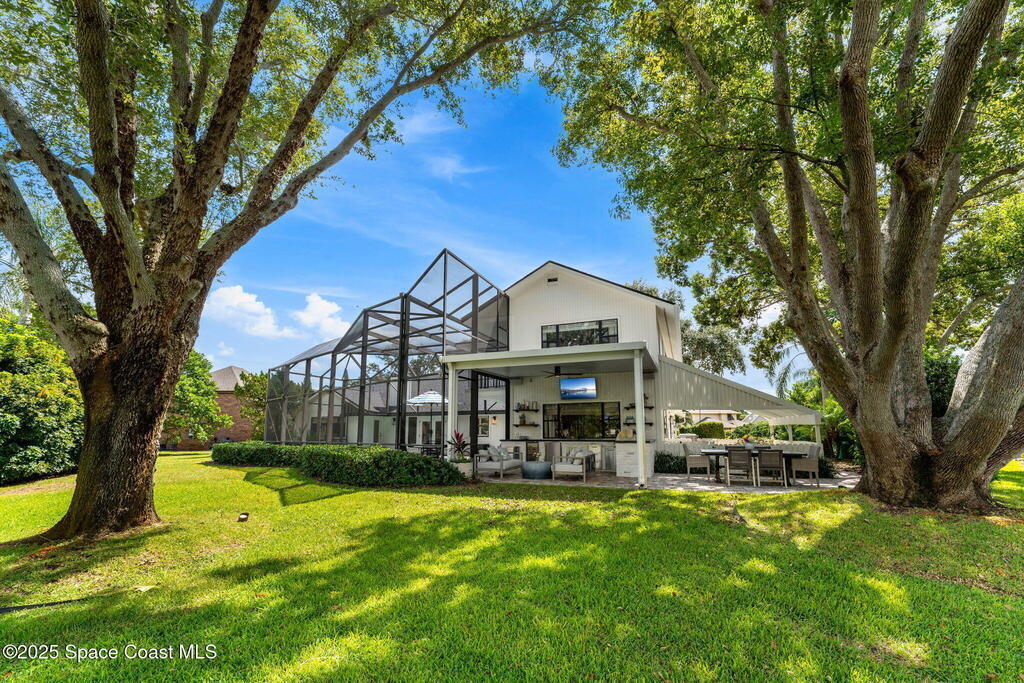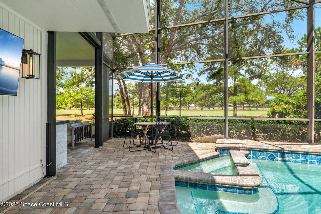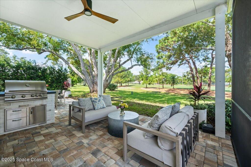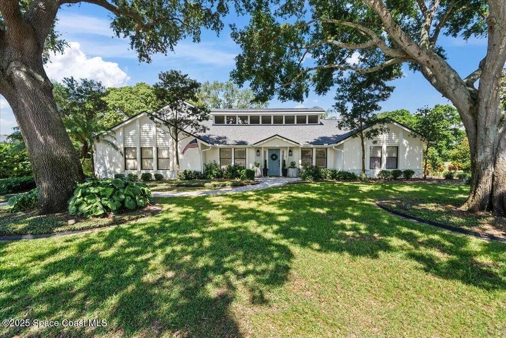 Welcome to 610 Woodbridge Drive, where celebrity-level design meets an unrivaled setting on the 18th hole of Suntree Country Club, Brevard's most exclusive Golf and Tennis Club. Homes along this stretch rarely come to market, making this a truly exceptional opportunity. Featured on Houzz TV's ''My Houzz: Kate Upton's Surprise Renovation,'' this 4-bedroom, 3.5-bath, 3,340 sq. ft. residence was reimagined in 2019 by renowned designer Motivo Home, who delivered curated updates to the primary suite, guest bath, and private office retreat. That same year a new roof was installed, with additional enhancements in the years following, including new pavers on the driveway and pool deck, a turf side yard, and extensive landscape upgrades.Positioned on a wide, private cul-de-sac lot, the home offers both prestige and seclusion, an unparalleled combination within Suntree's most desirable enclave.