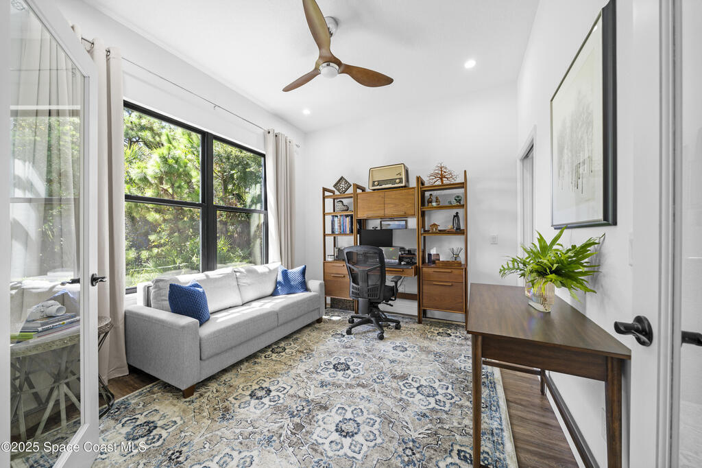 Welcome to this stunning 4-bedroom 4-bathroom(plus office)(plus multi-generational area), modern farmhouse built in 2023, offering 2,901 square feet of thoughtfully designed living space on over half an acre of Florida beauty. Set amid native pines and palms, this home effortlessly combines clean, contemporary lines with natural textures, making it equally suited for relaxed family living and elegant entertaining. Step inside the expansive great room where vaulted ceilings, rich wood-look flooring, and a dramatic fireplace create an airy, welcoming ambiance. The gourmet kitchen is a chef's dream, featuring an oversized quartz island, induction stove top, custom range hood, and abundant cabinetry. A dedicated office with French doors provides a private and light-filled workspace for working from home or studying. Designed with flexibility in mind, the home features a true multi-generational suite with a private bedroom, full bath, and its own living room. Hurricane Windows.