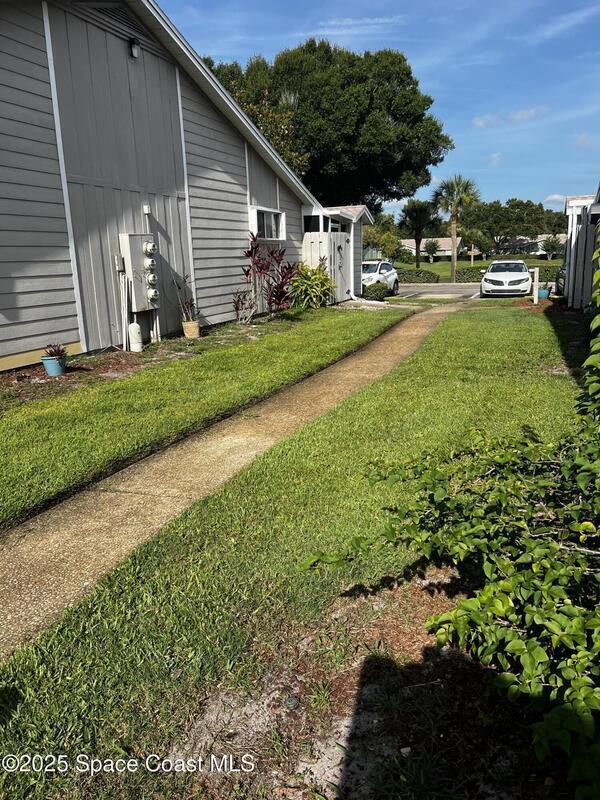 Price just reduced! This 2-bed, 2-bath, 1,067 sq ft courtyard townhome is a true diamond in the rough--perfectly located just 1 mile from EFSC, walking distance to Walmart and shopping, and minutes to SR-528 for an easy commute to KSC, Orlando, and the beaches. Part of a well-maintained 4-plex, the home features vaulted ceilings, skylights, large walk-in closets, sliders from both bedrooms to a fenced courtyard with 10x4 storage shed, and a 2023 dishwasher with farmhouse sink. Newer AC (within 5 years) and newer roof (replaced by HOA). While the interior is original and needs cosmetic updates, the big-ticket items are already taken care of. The $460/mo HOA includes roof, exterior paint, fence, siding, lawn care, cable, internet, pest control, irrigation, termite bond, and more--so the new owner won't need to lift a finger outside. With multiple pools, ponds, a clubhouse, and strong rental demand, this is a prime opportunity for a savvy investor or owner-occupant to make it shine.