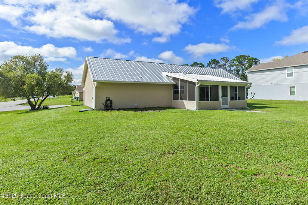 Beautifully renovated corner-lot home in NW Palm Bay, ready for you to move right in! Everywhere you look--it's new! A new metal roof, new AC, new windows, new counters, and stylish new flooring throughout. The kitchen and bathrooms have been fully updated for modern comfort and convenience. And don't miss the screen-enclosed sunroom--a bright, breezy bonus space perfect for morning coffee, weekend lounging, or evening dinners without the mosquitos. Sitting on an oversized 0.3-acre lot, there's space to spread out and enjoy the peaceful neighborhood. Don't wait--schedule your private showing today!