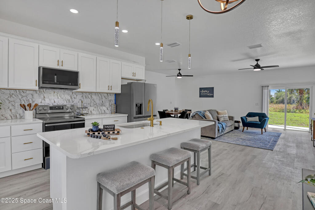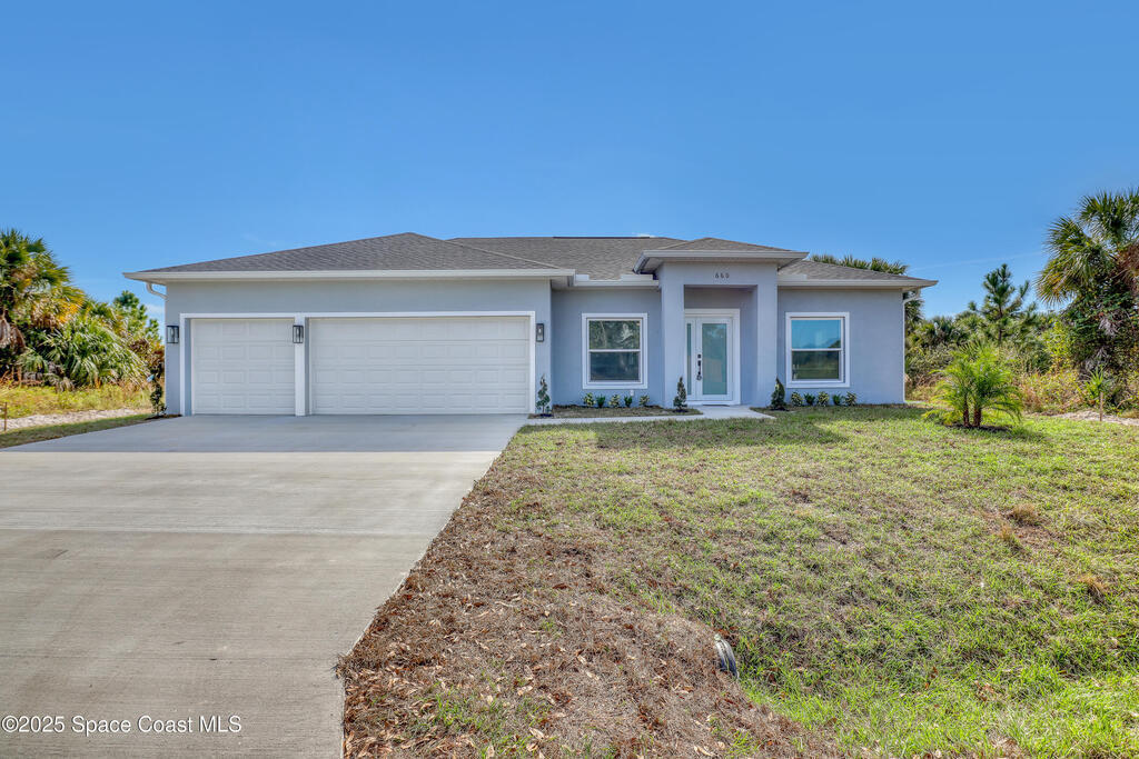 Welcome to this beautifully crafted, brand-new single-story home scheduled for completion in November 2025. With 4 spacious bedrooms and 2 full baths 3CAR GARAGE!, this home is perfect for the growing family or those looking to retire in comfort. Listed at $375,000, it offers excellent value at approximately $209 per square foot. Full 3-car garage -- a rarity in new construction at this price point. High-end finishes: vinyl plank flooring, tiled showers, all white plywood cabinetry, and a stylish kitchen backsplash. Impact-rated windows and doors provide peace of mind and durability. 10-foot ceilings elevate the open-concept interior space, creating a light and airy feel. Split-bedroom design with an open floor plan gives privacy and flow for everyday living as well as entertaining. No HOA to worry about--offering flexibility and lower monthly costs. Excellent location just minutes away from the Bayside Lakes area, key amenities including a supermarket (Publix), high school and more!