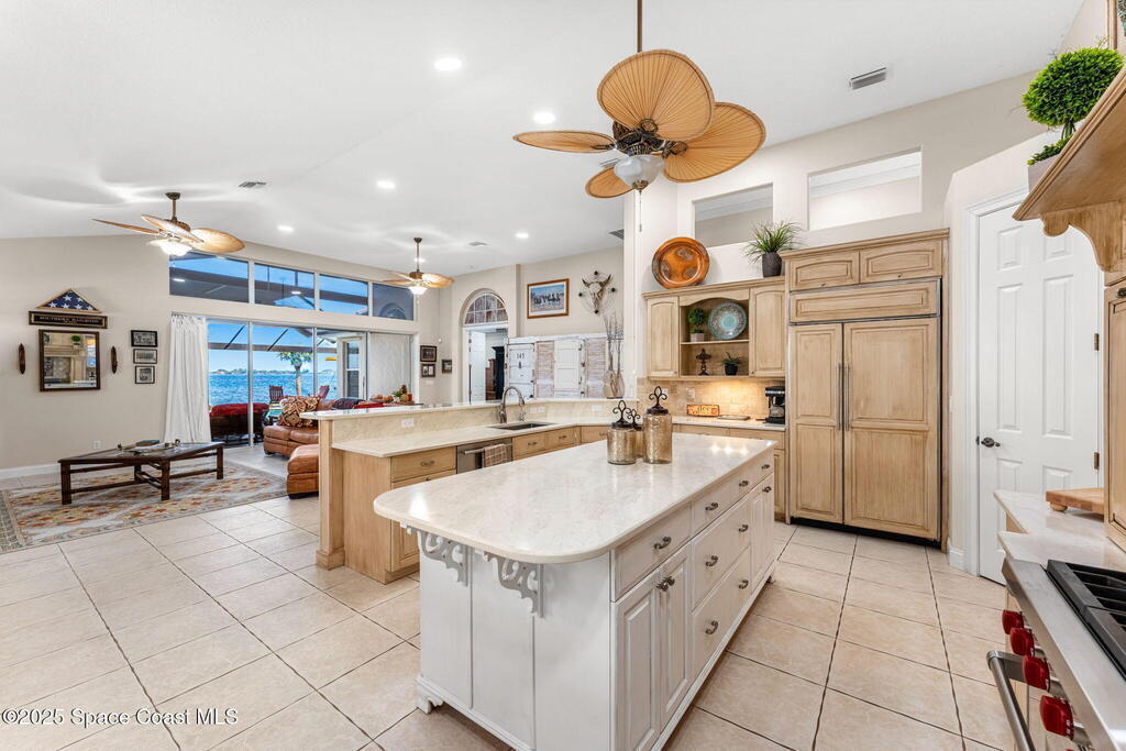 Breakfast Nook , Built-in Features , Ceiling Fan(s) , Kitchen Island , Primary Bathroom -Tub with Separate Shower , Primary Downstairs , Split Bedrooms , Vaulted Ceiling(s) , Walk-In Closet(s)